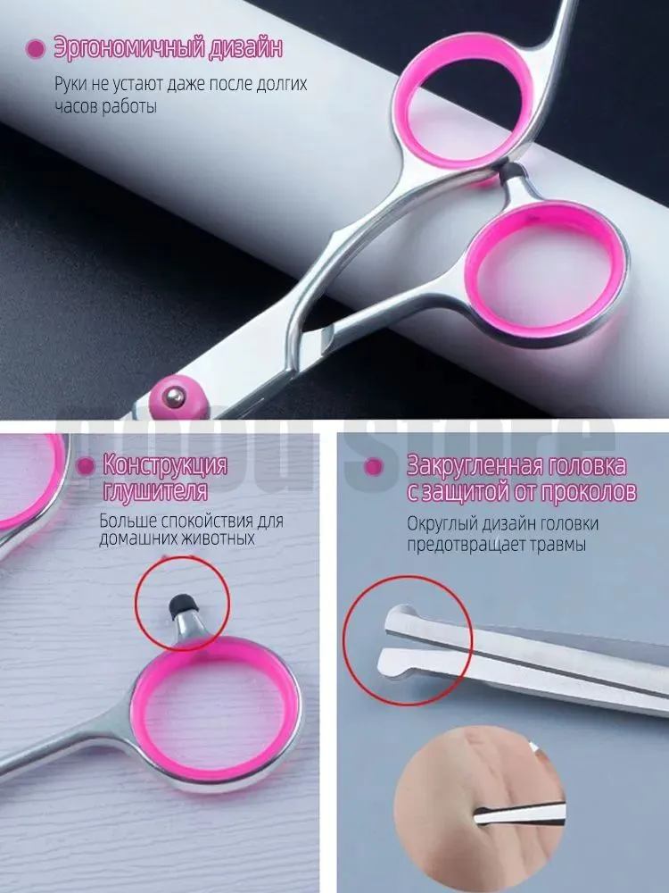 Этот набор ножниц для стрижки собак и кошек идеально подходит для профессионального и домашнего использования. Он включает все необходимые инструменты для качественного и безопасного ухода за вашими питомцами. Лезвия ножниц выполнены из высококачественного нержавеющего металла, что обеспечивает долговечность и точность стрижки.С этим набором вы сможете легко поддерживать здоровье и внешний вид ваших животных. Ножницы идеально подходят для стрижки шерсти различных пород собак и кошек. Они удобны в использовании и не требуют большого опыта. Кроме того, набор включает инструменты, которые облегчают процесс груминга, обеспечивая комфорт для вашего питомца.Набор подходит для ухода как за длинношерстными, так и за короткошерстными животными. Простой и безопасный в использовании, он идеально подходит для владельцев домашних животных, которые хотят самостоятельно ухаживать за своими питомцами.