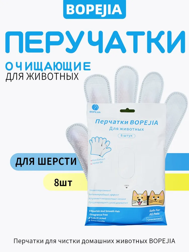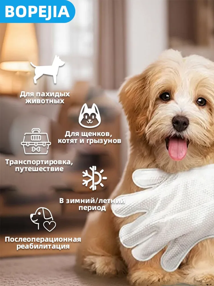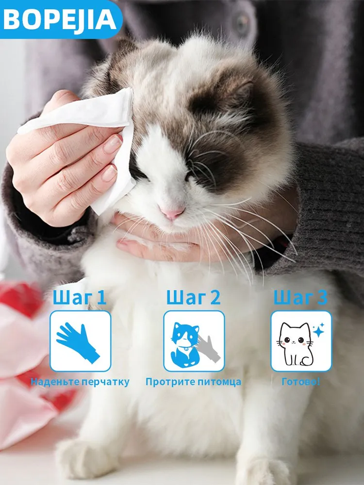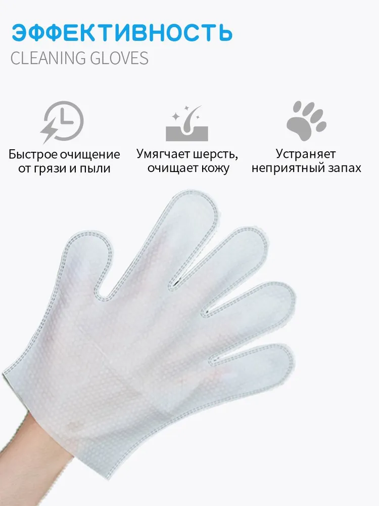 Влажные салфетки (перчатки) для мытья (груминг) собак/кошек (1 упаковка), для мытья лап и шерсти