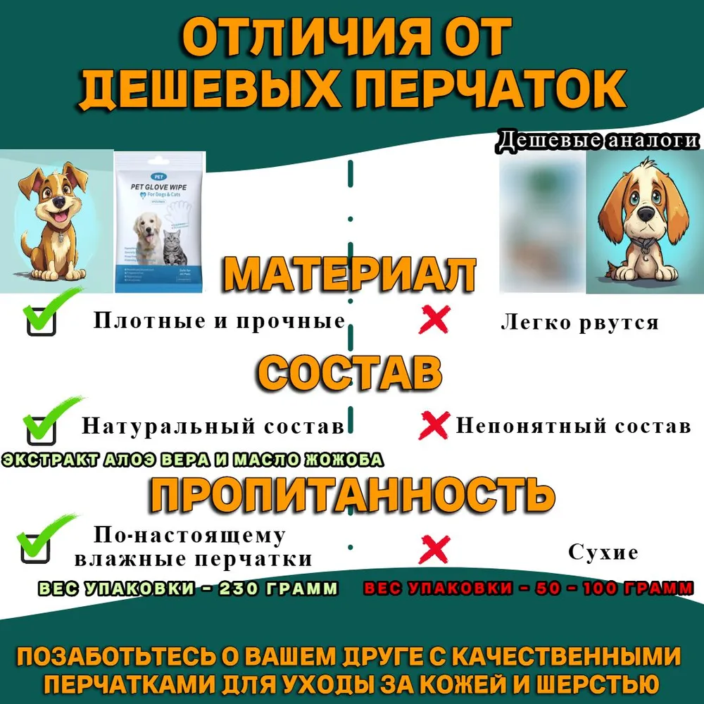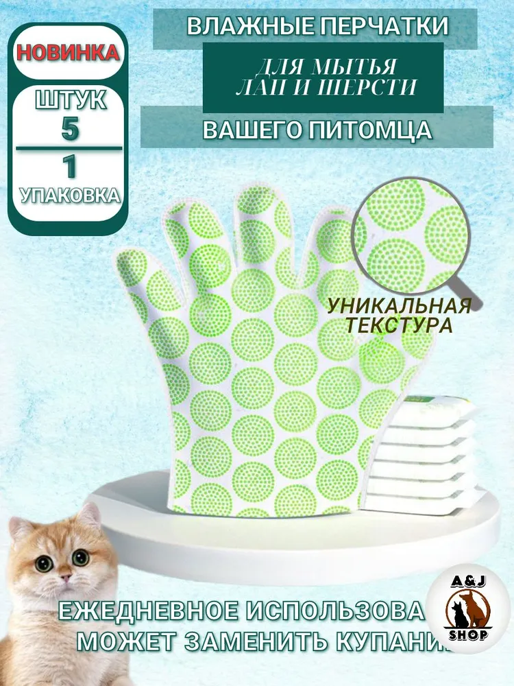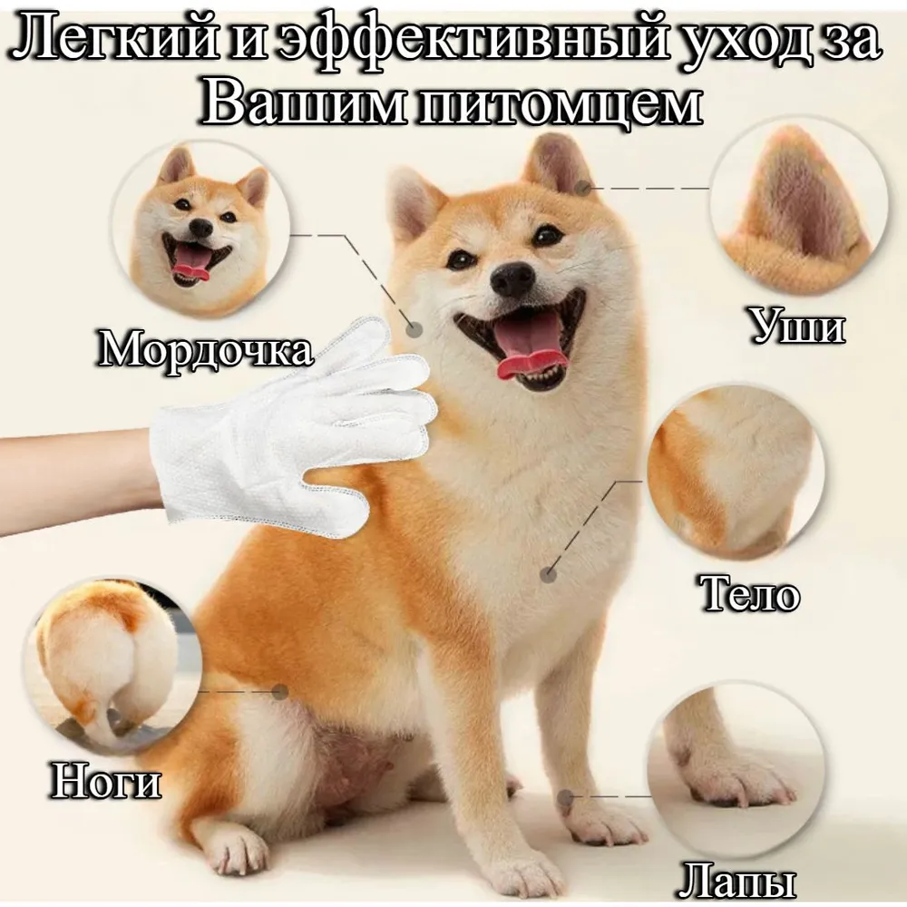 Влажные салфетки (перчатки) для мытья (груминг) собак/кошек (1 упаковка), для мытья лап и шерсти