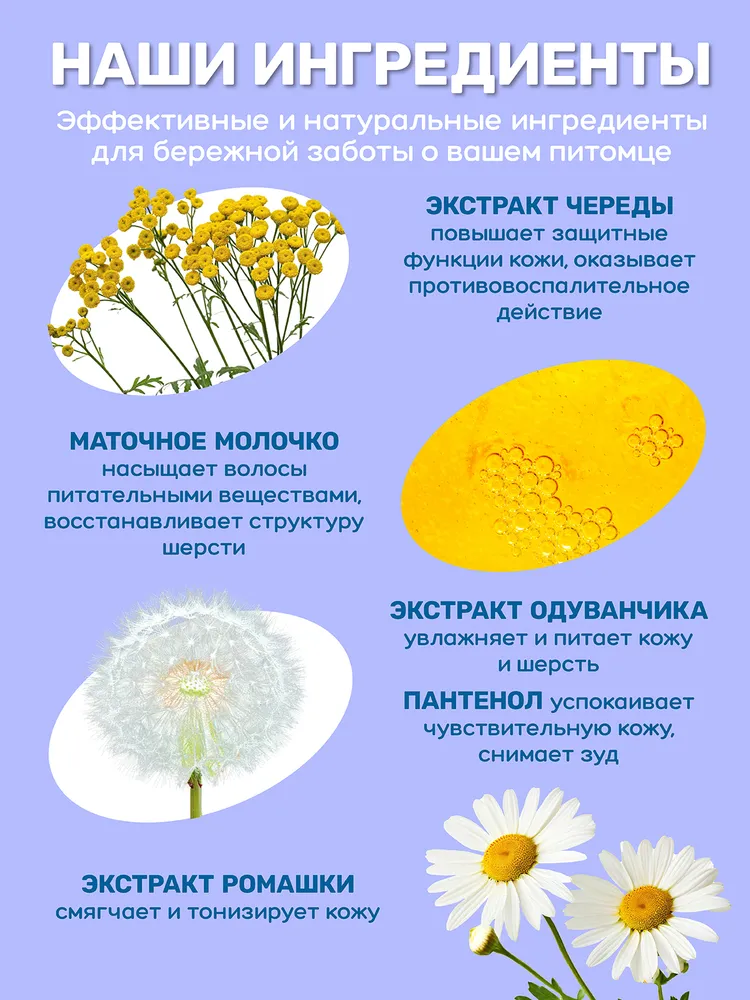 После каждой прогулки кожа и шерсть питомца сталкиваются с агрессивной уличной средой, оседая на лапах и шерсти. Крем-мыло ZOORIK с маточным молочком создано, чтобы нежно и эффективно очищать, одновременно ухаживая за чувствительными участками.В составе — активный комплекс натуральных компонентов. Маточное молочко насыщает кожу витаминами, восстанавливает мягкость, укрепляет барьерные функции. Экстракты череды, ромашки и одуванчика снимают покраснение, способствуют заживлению микротрещин и устраняют неприятный запах. Пантенол успокаивает, ускоряет восстановление и делает кожу менее уязвимой к раздражающим факторам.Растительный глицерин и кондиционирующий компонент сохраняют влагу, придают шерсти шелковистость, предотвращают пересушивание и спутывание. Кремовая текстура легко наносится, быстро смывается и подходит даже для самых чувствительных питомцев — в том числе щенков и котят.После использования лапы и шерсть становятся чистыми, свежими, мягкими на ощупь. Крем-мыло идеально подходит для регулярного применения и делает ежедневный уход простым, безопасным и приятным как для животного, так и для владельца.СПОСОБ ПРИМЕНЕНИЯ: загрязненные участки тела животного (лапы, живот, морда и т.д.) смочить водой, нанести небольшое количество средства, втирать до образования пены, затем смыть теплой водой. Можно разбавить средство в емкости с водой и промыть загрязненные участки.Противопоказания: индивидуальная непереносимость компонентов. Только для наружного применения. Избегать попадания в глаза.E-COSMETIC – официальный поставщик ZOORIK.