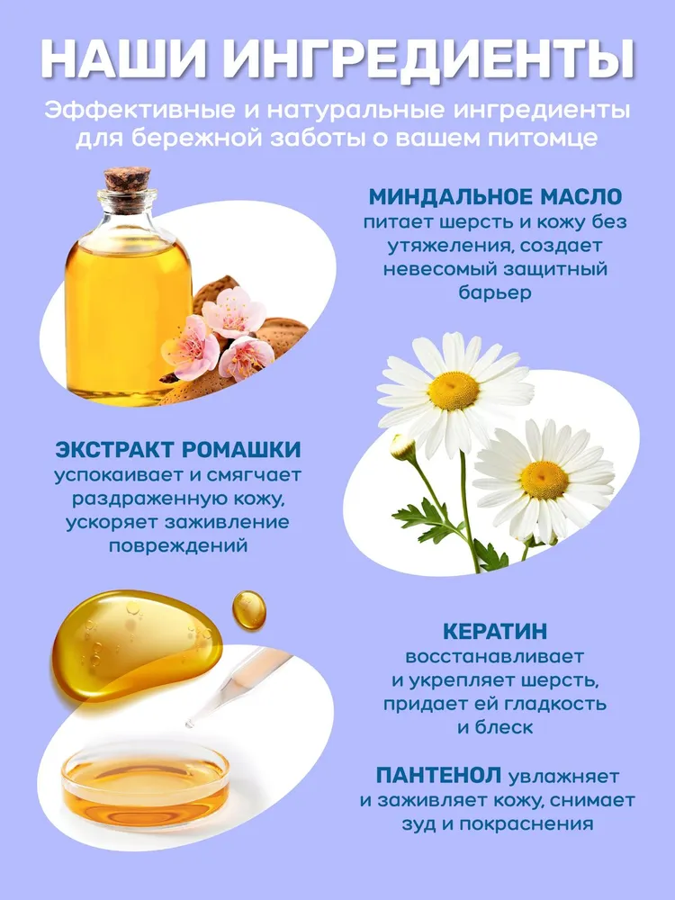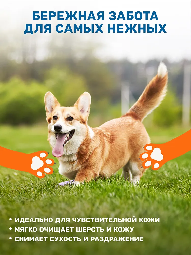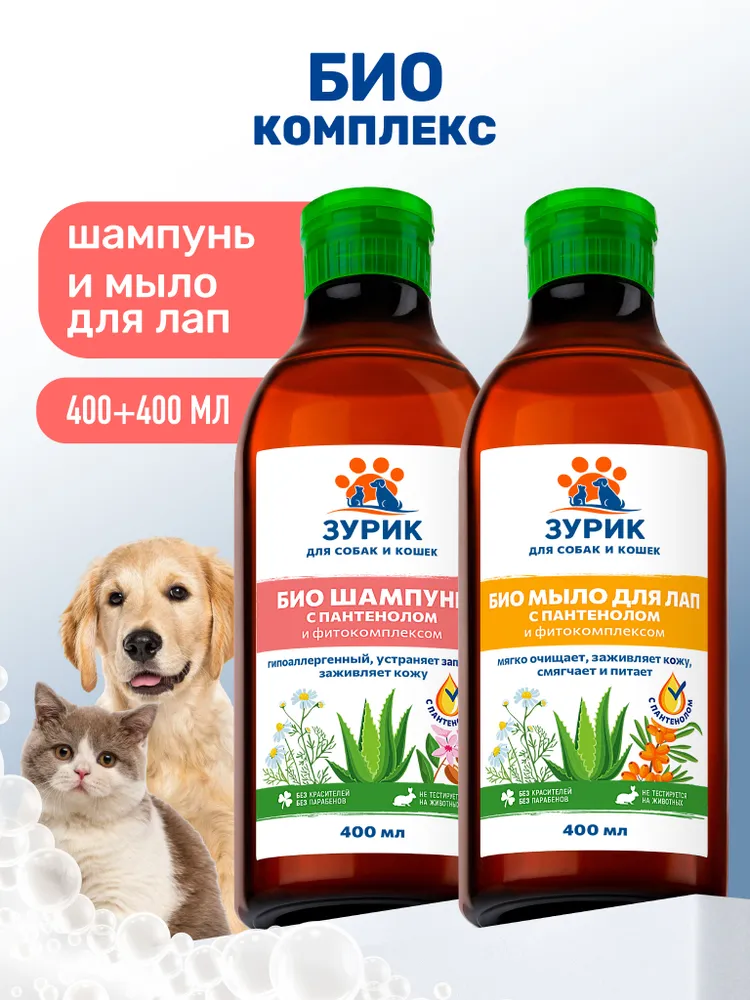 Комплексный уход для тех, кто заботится о чистоте питомца и здоровье его кожи. Шампунь нежно удаляет загрязнения, не нарушая естественный защитный барьер. В составе — пантенол для восстановления, ромашка и алоэ для снятия покраснений, миндальное масло и растительный глицерин для глубокого увлажнения. Гидролизованный кератин укрепляет структуру шерсти, делая её гладкой, блестящей и послушной. Экстракты растений ухаживают не только за телом, но и за кожей, защищая от внешнего воздействия.Мыло для лап — идеальное решение для ежедневного ухода после прогулок. Его нежная формула эффективно очищает, не пересушивая подушечки. Облепиха в составе смягчает, алоэ заживляет мелкие трещины, ромашка снимает дискомфорт. Лапы остаются чистыми, ухоженными и защищёнными, а в доме — порядок.Набор решает сразу две важные задачи: деликатное очищение шерсти и бережный уход за лапами. После применения питомец выглядит ухоженным, кожа не страдает от пересушивания, а шерсть — лёгкая, свежая и сияющая.СПОСОБ ПРИМЕНЕНИЯ: вспенить шампунь с помощью губки, равномерно нанести на влажную шерсть, уделяя особое внимание пораженным участкам и складочкам на коже. Оставить на 3-5 минут. Тщательно смыть теплой водой.Ополосните лапки теплой водой. Необходимое количество мыла нанесите на мокрую губку, вспеньте и очистите лапки от загрязнений. После этого смойте средство теплой водой и высушите питомца полотенцем. Рекомендовано для ежедневного применения.E-COSMETIC – официальный поставщик ZOORIK.