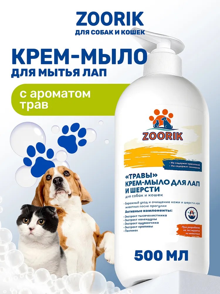 Каждая прогулка — это радость для питомца и вызов для его кожи и шерсти. Крем-мыло ZOORIK «Травы» создано для тех, кто заботится о чистоте и здоровье животного после улицы. Оно деликатно удаляет остатки грязи, соли, мазута, пыли и городских реагентов, устраняя при этом неприятный запах и не вызывая раздражений.В составе — мощный комплекс растительных экстрактов: тысячелистник, календула, крапива и одуванчик. Эти травы не только очищают, но и глубоко успокаивают кожу, предотвращают сухость, заживляют микротрещины, уменьшают покраснения. Пантенол усиливает восстановление, снимает зуд и дарит ощущение комфорта.Растительный глицерин насыщает влагой, возвращает мягкость и препятствует пересушиванию. Кондиционирующий компонент улучшает расчёсывание и делает шерсть шелковистой на ощупь.Мыло подходит для регулярного применения, безопасно даже для котят и щенков, не содержит агрессивных компонентов и поддерживает естественный баланс кожи.После использования шерсть становится чистой, мягкой и свежей, а лапы — защищёнными и увлажнёнными. Прогулки без последствий и забота, которую ваш питомец точно оценит.СПОСОБ ПРИМЕНЕНИЯ: загрязненные участки тела животного (лапы, живот, морда и т.д.) смочить водой, нанести небольшое количество средства, втереть до образования пены, затем смыть теплой водой. Можно разбавить средство в емкости с водой и промыть загрязненные участки. Противопоказания: индивидуальная непереносимость компонентов. Только для наружного применения. Избегать попадания в глаза.E-COSMETIC – официальный поставщик ZOORIK.