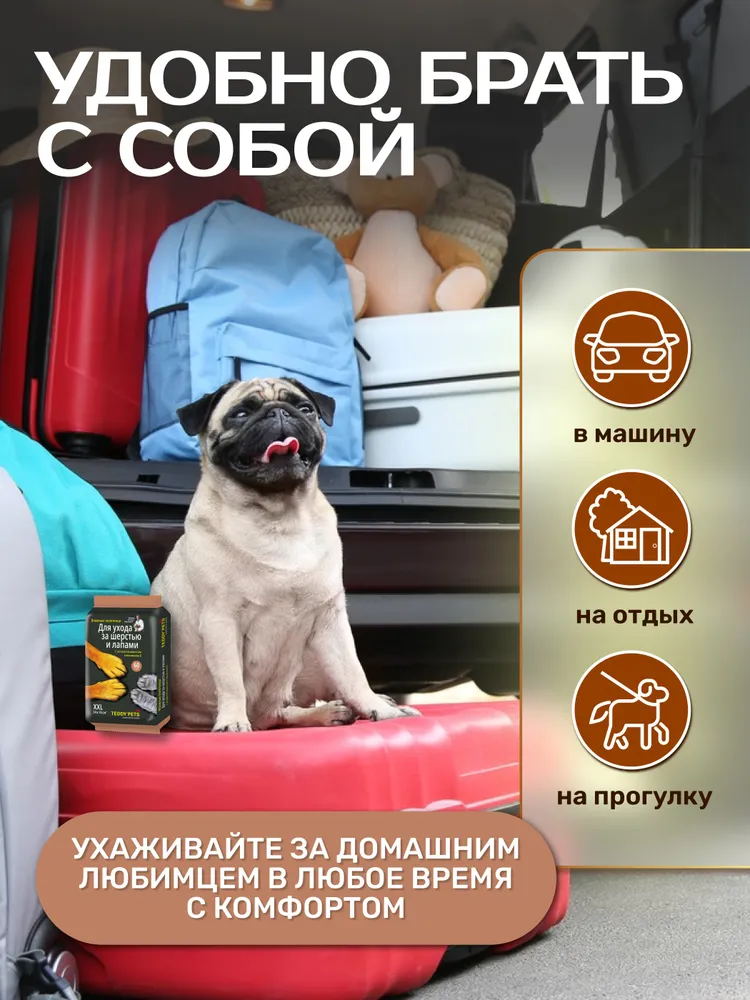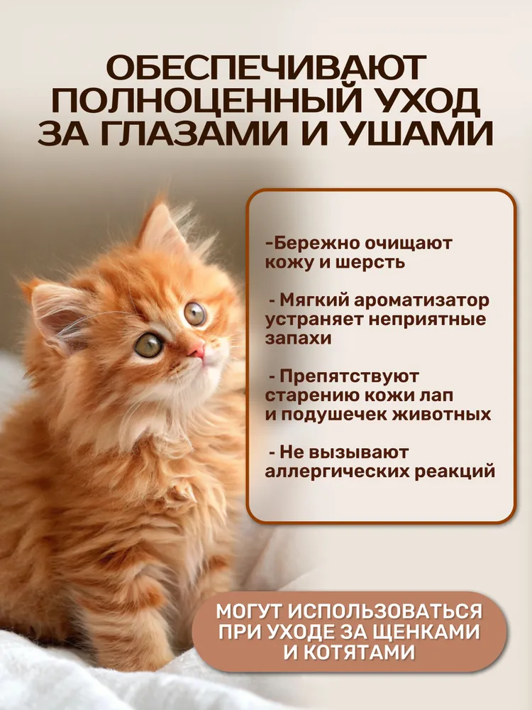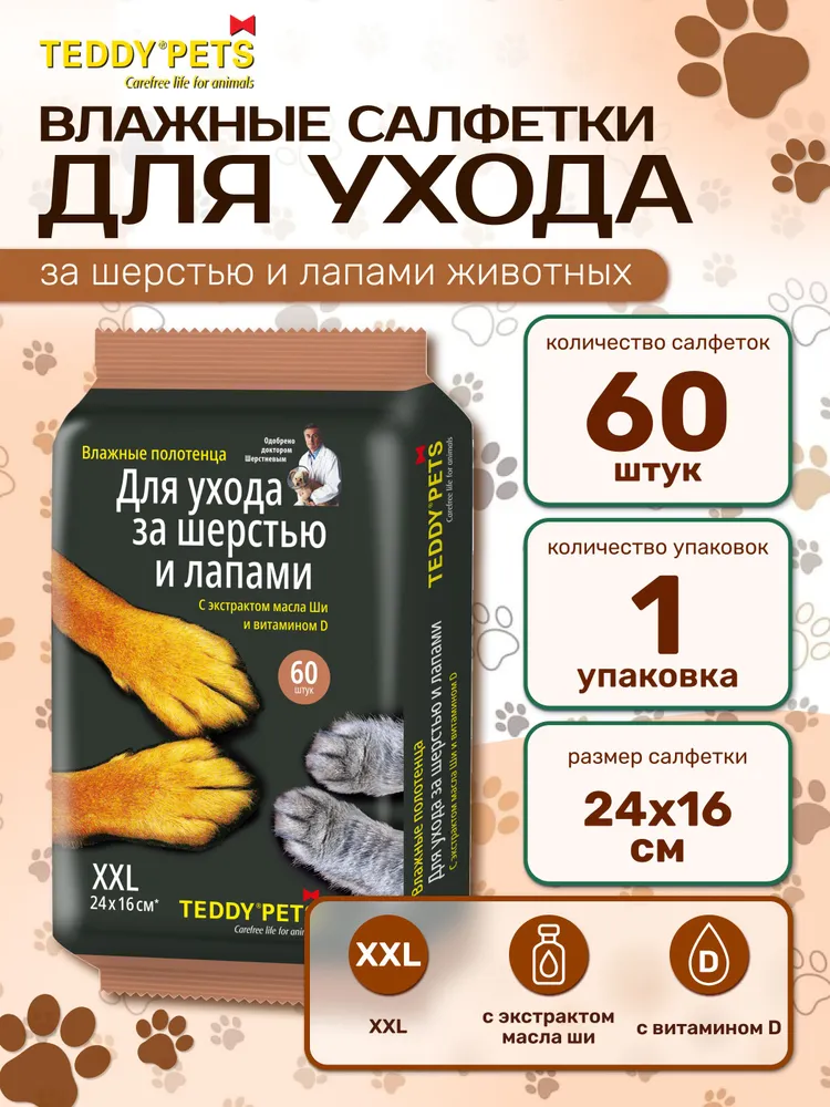 ВЛАЖНЫЕ САЛФЕТКИ ДЛЯ УХОДА ЗА ШЕРСТЬЮ И ЛАПАМИ "TEDDY PETS"📏 Размер ❗️XXL❗️ - 24✖️16 см.🐶 Предназначены для очистки и ухода за шерстью и лапами вашего питомца.🐈⬛ С экстрактом масла Ши и витамином D.🟤 Количество салфеток в 1 упаковке - 60 штук.🔎 Состав: нетканое полотно, пропитывающий лосьон.✔️ Помогают сохранить здоровый внешний вид.✔️ Масло розмарина ухаживает за шерстью, способствует глубокому очищению, стимулирует регенерацию и ускоряет ее рост.✔️ Масло Ши прекрасно питает и увлажняет лапы и шерсть, содержит витамины и липиды, что способствует ускорению регенерации.✔️ Витамин D защищает кожу лап от микробной агрессии, обеспечивает формирование рогового слоя, защищает от воздействия УФ лучей.✔️ Сделано в России.НОВИНКИ ДЛЯ ВАШЕГО ПИТОМЦА!Артикул: 1622739038Влажные салфетки для животных Teddy pets, салфетки для глаз и ушей собак и кошек, 50 штук