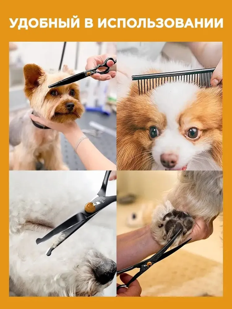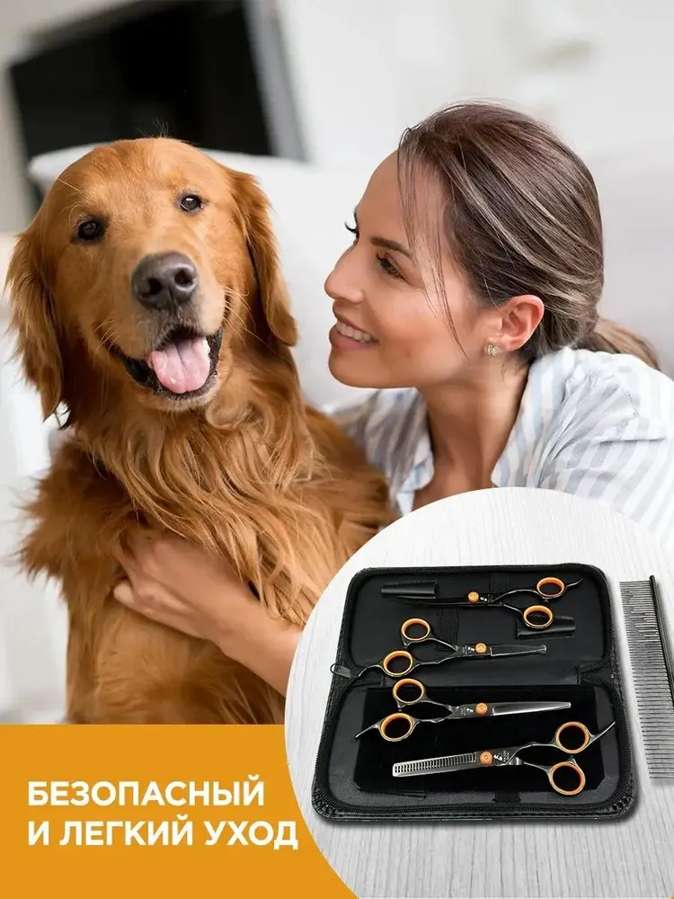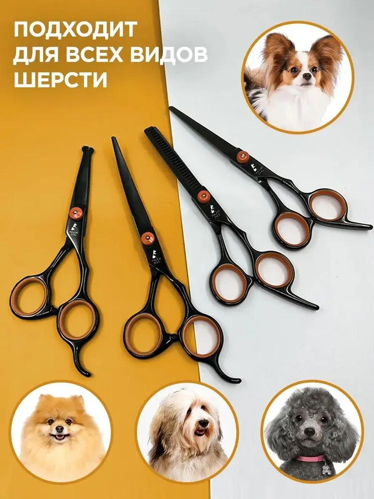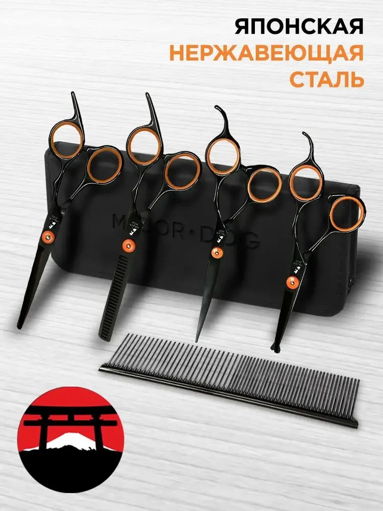 ПОСМОТРИТЕ ФОТО ОТ РЕАЛЬНЫХ ПОКУПАТЕЛЕЙЯПОНСКАЯ НЕРЖАВЕЮЩАЯ СТАЛЬНабор ножниц для стрижки собак Tierschere GH-4 выполнен из японской нержавеющей стали, что повышает надежность и срок службы набора в несколько раз, в сравнении с другими аналогами.ЛЕГКИЙ И БЕЗОПАСНЫЙ УХОДЗа счет уникальных материалов и продуманного дизайна, ножницы Major Dog просты в использовании, что делает уход за домашним питомцем простым и легким.ПОДХОДИТ ДЛЯ ВСЕХ ВИДОВ ШЕРСТИНабор ножниц для стрижки собак Tierschere GH-4 легко справляется с любым типом шерсти. За счет острых лезвий, даже запутанная шерсть не составит никакого труда.УДОБНЫЕ В ИСПОЛЬЗОВАНИИНабор ножниц для стрижки собак Tierschere GH-4 максимально удобен в использовании, благодаря продуманному дизайну и современным материалам, используемым при создании набора.ФИЛИРОВОЧНЫЕ НОЖНИЦЫНабор Tierschere GH-4 включает в себя филировочные ножницы, обладающие острым краем и 26-ю зубьями. При этом титановое покрытие обеспечивает максимальную надежность и увеличенный срок эксплуатации. Даже при интенсивном использовании ножницы остаются такими же острыми и надежными.НОЖНИЦЫ ДЛЯ УХОДАВ наборе Tierschere GH-4 также предусмотрены ножницы для ухода с закругленным концом. Данные ножницы отлично подходят для работы с лапами, глазами и пространством около ушей.РАСЧЕСКА В КОМПЛЕКТЕРасческа из японской стали, предусмотренная в комплекте набора, отличается повышенной стойкостью, а также уникальным дизайном для более удобного использования.ОГРАНИЧИТЕЛЬ С ОТСКОКОМВсе ножницы из набора Tierschere GH-4 оснащены продуманным ограничителем с отскоком, что делает использования еще более удобным и практичным. Рука не устает даже при интенсивной работе в специализированном салоне с большой посещаемостью.ЧЕХОЛ В КОМЛЕКТЕВ комплекте набора предусмотрен качественный, стильный чехол для хранения, благодаря которому можно с легкостью взять ножницы с собой в дорогу и хранить в удобном месте.