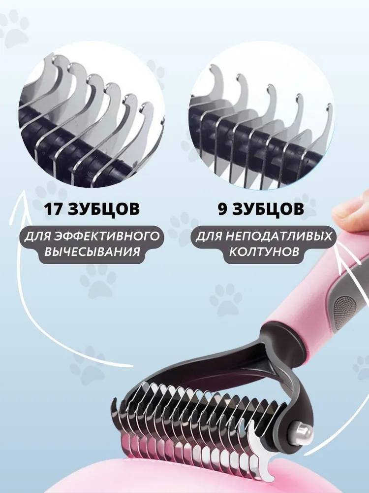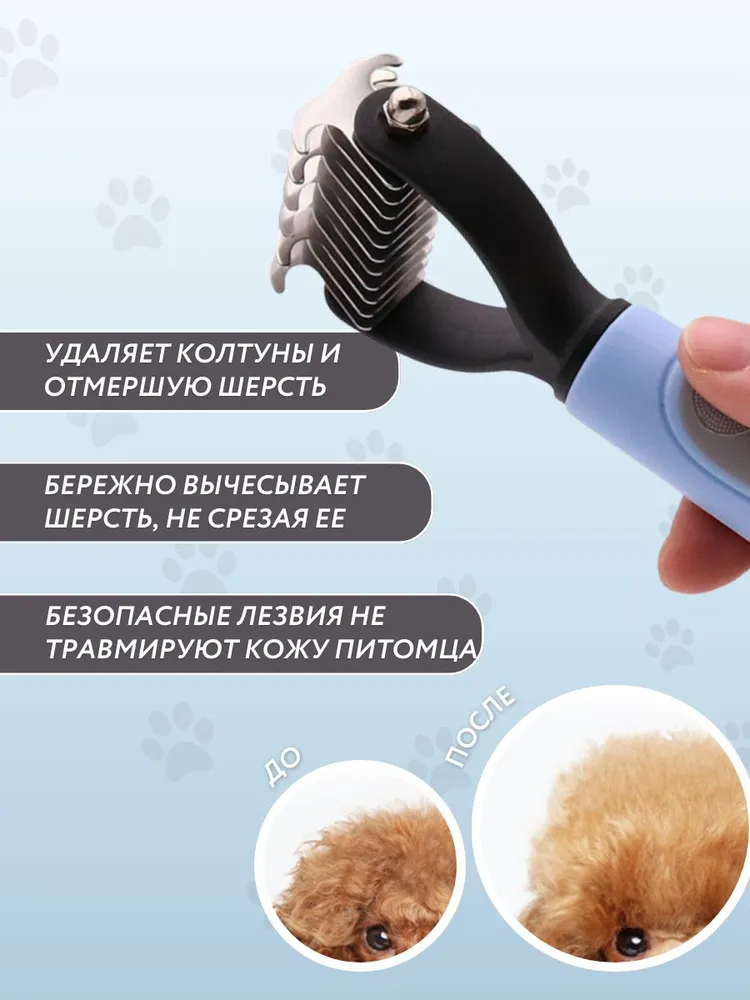 Колтунорез + дешеддер 2в1Колтунорез для кошек и собак - это универсальная расческа, которая бережно удаляет отмершие волоски внутреннего подшерстка, благодаря чему шерстяной покров не спутывается и не образует колтуны.Преимущества- высоколегированная сталь- безопасные лезвия с "умной" заточкой- прорезиненная эргономическая ручка
