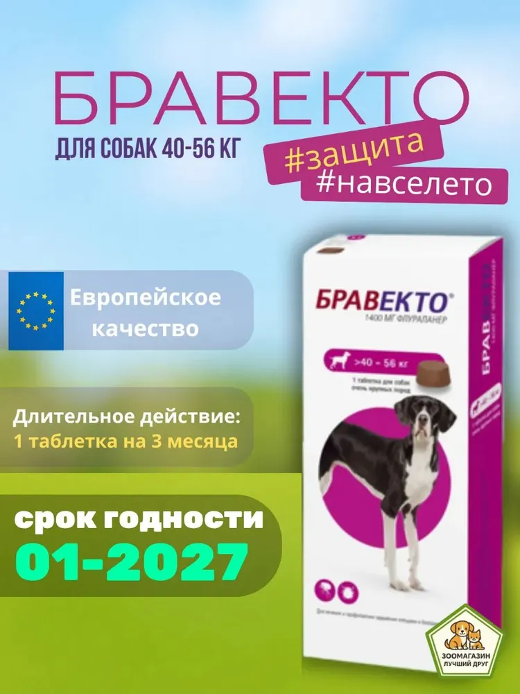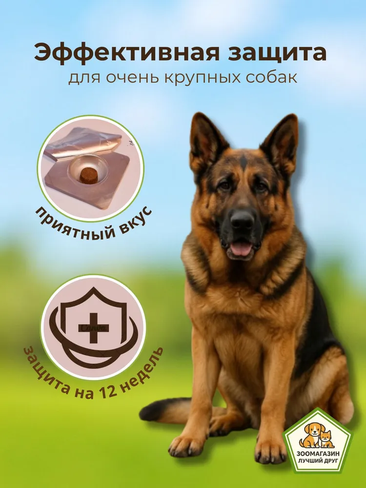 ВНИМАНИЕ, УПАКОВКА ДЛЯ ТУРЕЦКОГО РЫНКА !Жевательная таблетка для защиты собак от блох, иксодовых клещей, подкожных клещей (демодекоза), чесоточных клещей (саркоптоза) и ушных клещей (отодектоза).Разовый прием обеспечивает защиту от клещей и блох на протяжении 12 недель.Действующее вещество флураланер блокирует нервные окончания блох и клещей, приводя к их параличу и гибели.применяется щенкам с 8-недельного возраста, всем породам и весом от 2 кг.Трогать и гладить собаку можно сразу после дачи препарата. Дети или другие животные могут контактировать с собакой без ограничений.Гулять можно сразу, когда вы дали таблетку собаке. Купать собаку, в том числе с шампунем, и в водоёмах, можно независимо от срока дачи таблетки, без ограничений и дополнительных обработок.