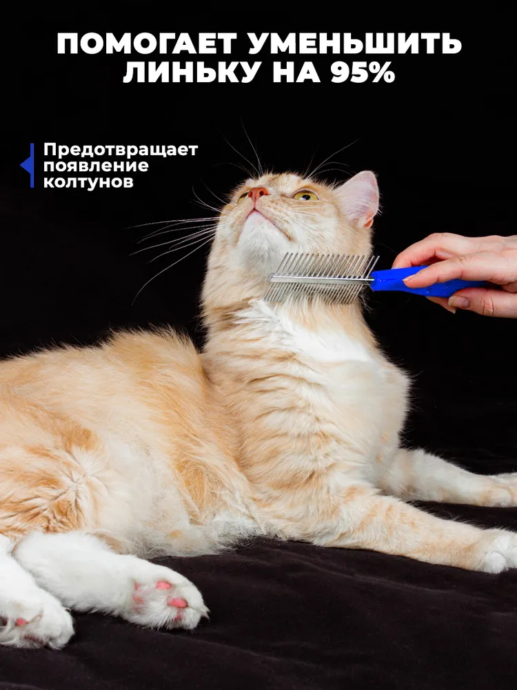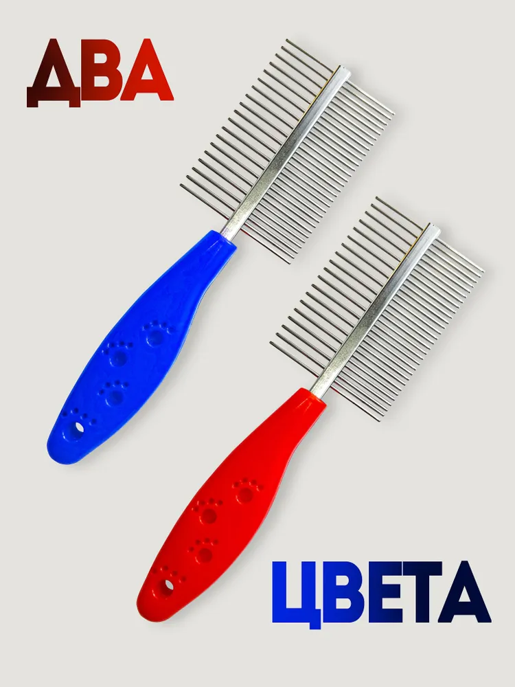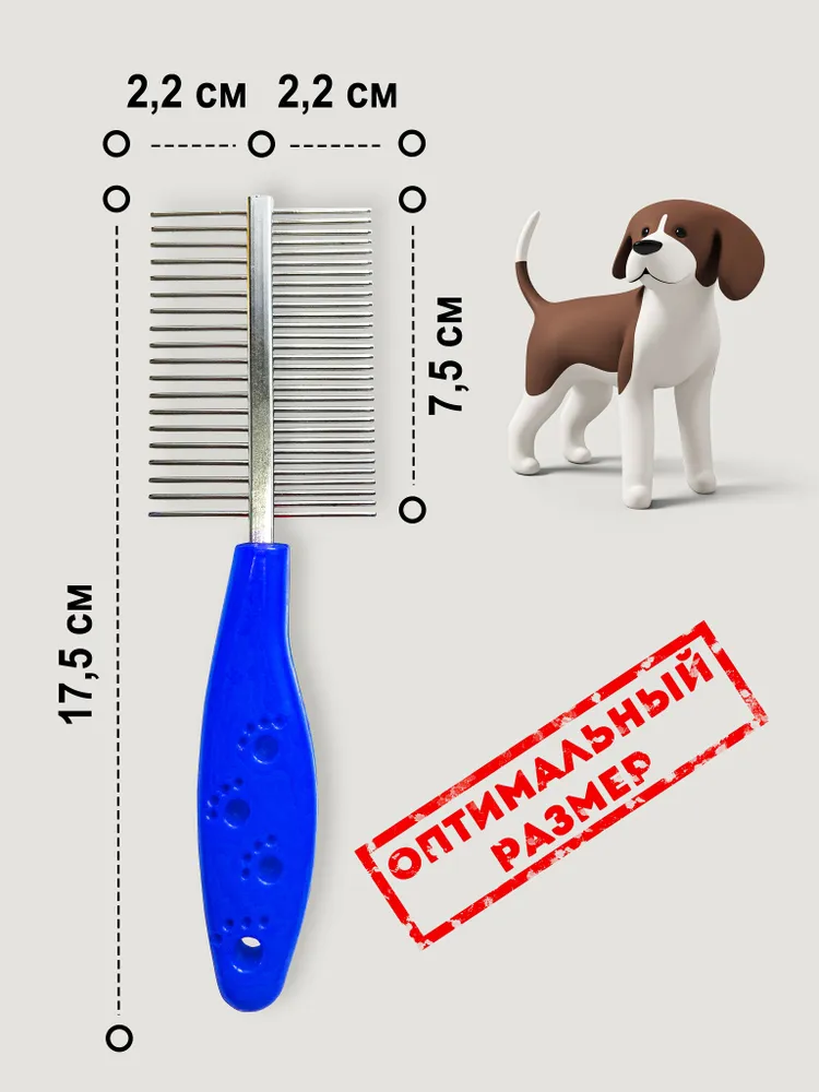 Синяя двухсторонняя большая массажная чесалка для вычесывания жёсткой, грубой и мягкой шерсти питомцев всех размеров сделает уход за домашними животными более профессиональным. Разная ширина между зубьями позволяет качественно провести процедуру расчесывания густой, редкой, длинной и средней линяющей шерсти, и даже гривы и хвостов лошадей. Двусторонняя расчёска подходит для массажа кота, хомяка, морских свинок, котят, щенков, котов или кролика. Кожа питомца не будет травмироваться, т.к. кончики зубьев не острые и слегка закруглены. Гребешок - это отличный подарок для маленьких карликовых, больших, крупных, мелких и средних пород ваших любимцев. Щетка имеет удобную ручку и может использоваться вами как массажер и дешеддер для длинношерстных и среднешерстных пород. По отзывам наших покупателей инструмент подходит для хорьков, хомяков, шпица, овчарки, пекинеса, бульдога, мопса, алабайя, хаски, лайки, спаниеля, грифона, пуделя, стаффордширского терьера, чихуахуа, бигля, йорка, таксы, шнауцера, питбуля, мейн-куна. При регулярном использовании скребок может заменить пуходёрку, колтунорез. Вычёсыватель работает намного лучше, чем угловая чесалка на стену, на угол, варежка, перчатка или рукавица для удаления волос и подшёрстка ваших пушистых любимцев и поможет вычесать вшей и блох. Наш металлический гребень очень недорогой. Вы можете купить его и сэкономить Ваш бюджет. Вместе с инструментом мы положили игрушку в подарок. Хвостик будет рад))) Используйте наш груминг инструмент как профессиональный грумер, с соблюдением ТБ, не давайте детям. Смотрите видео с карточки товара, отзывы покупателей и следите за нашими обновлениями. С уважением, Ваш VISO Pets