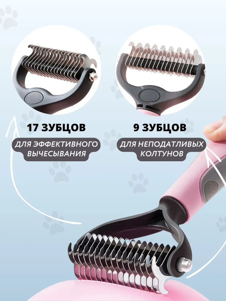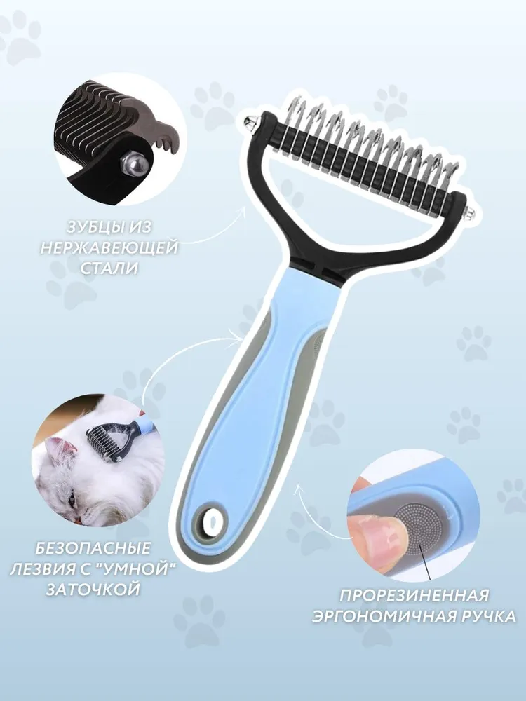 Колтунорез + дешеддер 2в1Колтунорез для кошек и собак - это универсальная расческа, которая бережно удаляет отмершие волоски внутреннего подшерстка, благодаря чему шерстяной покров не спутывается и не образует колтуны.Преимущества- высоколегированная сталь- безопасные лезвия с "умной" заточкой- прорезиненная эргономическая ручка