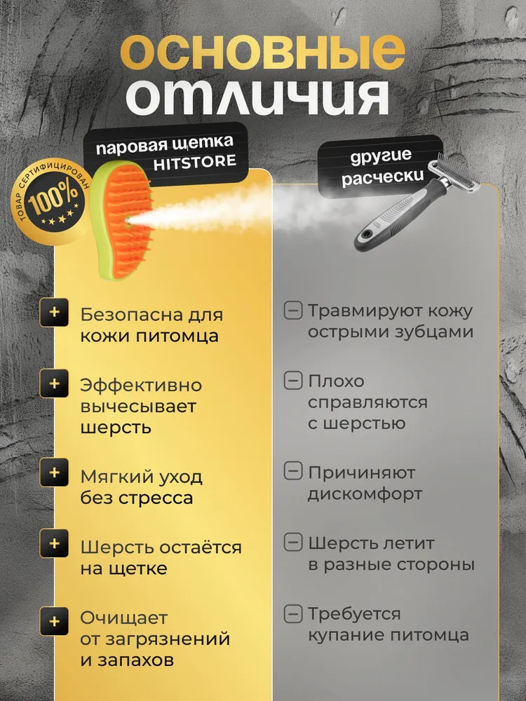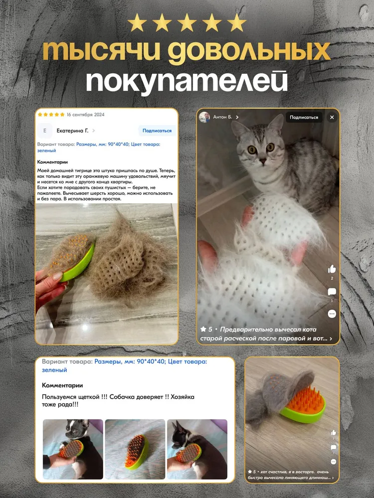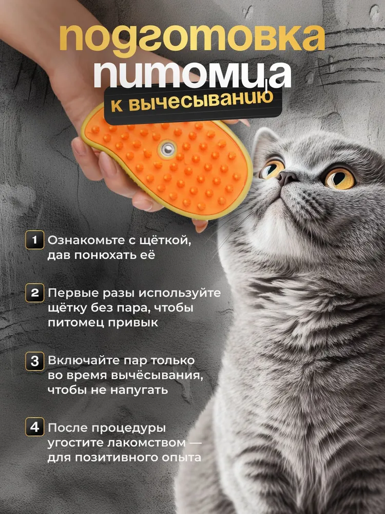 Расческа для кошек и собак использует передовые паровые технологии, которые помогают смягчать узлы и колтуны в шерсти, делая процесс ухода более приятным и безболезненным для животных. Это особенно важно для владельцев кошек и собак с густой или длинной шерстью, склонной к образованию колтунов.ДОНаша паровая расческа гарантирует чистый пол и мебель в вашем доме. Пусть вся шерсть остается на щетке!ПОСЛЕГлубокая очистка