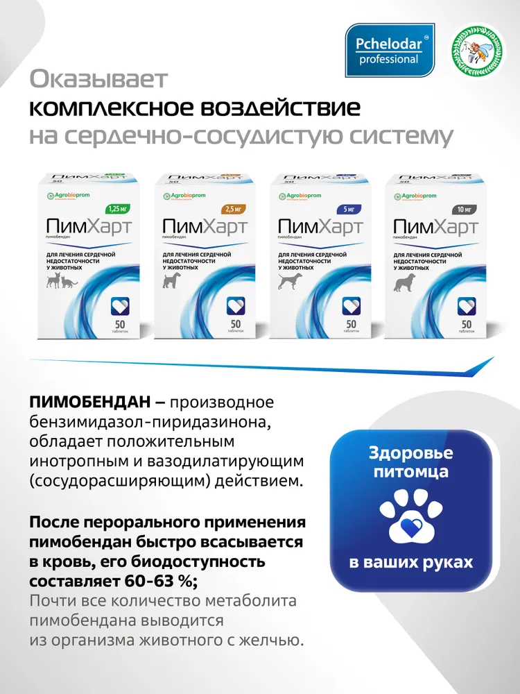 Пимхарт – эффективное средство для коррекции сердечных функций у животных📺 Описание продукта:Пимхарт – это специально разработанное лекарственное средство для лечения сердечной недостаточности у собак и кошек. В составе препарата содержится активный компонент пимобендан, который способствует улучшению сократительной функции миокарда, повышению эффективности кровообращения и снижению нагрузки на сердце.🌟 Основные характеристики:- Действующее вещество: пимобендан- Форма выпуска: таблетки- Применение: рекомендовано ветеринарными специалистами для лечения хронической сердечной недостаточности- Дозировка: индивидуально подбирается в зависимости от массы тела животного и стадии заболевания👍 Преимущества использования Пимхарта:- Улучшение качества жизни питомца- Снижение симптомов одышки и утомляемости- Поддержание стабильного состояния сердечно-сосудистой системы- Простота введения и удобство дозировки