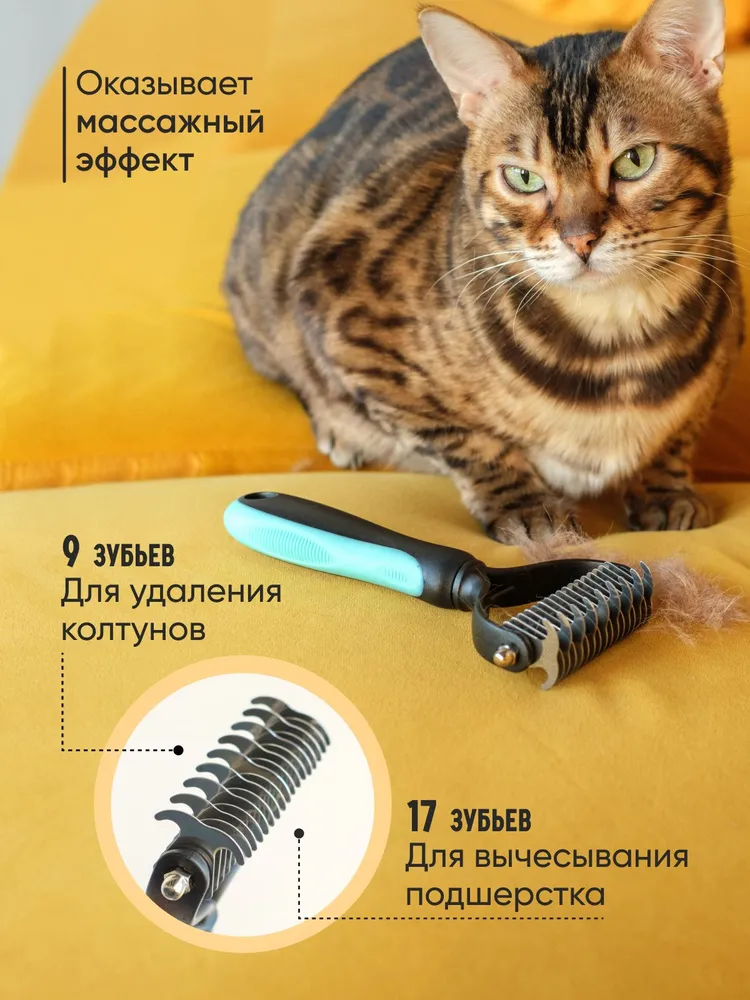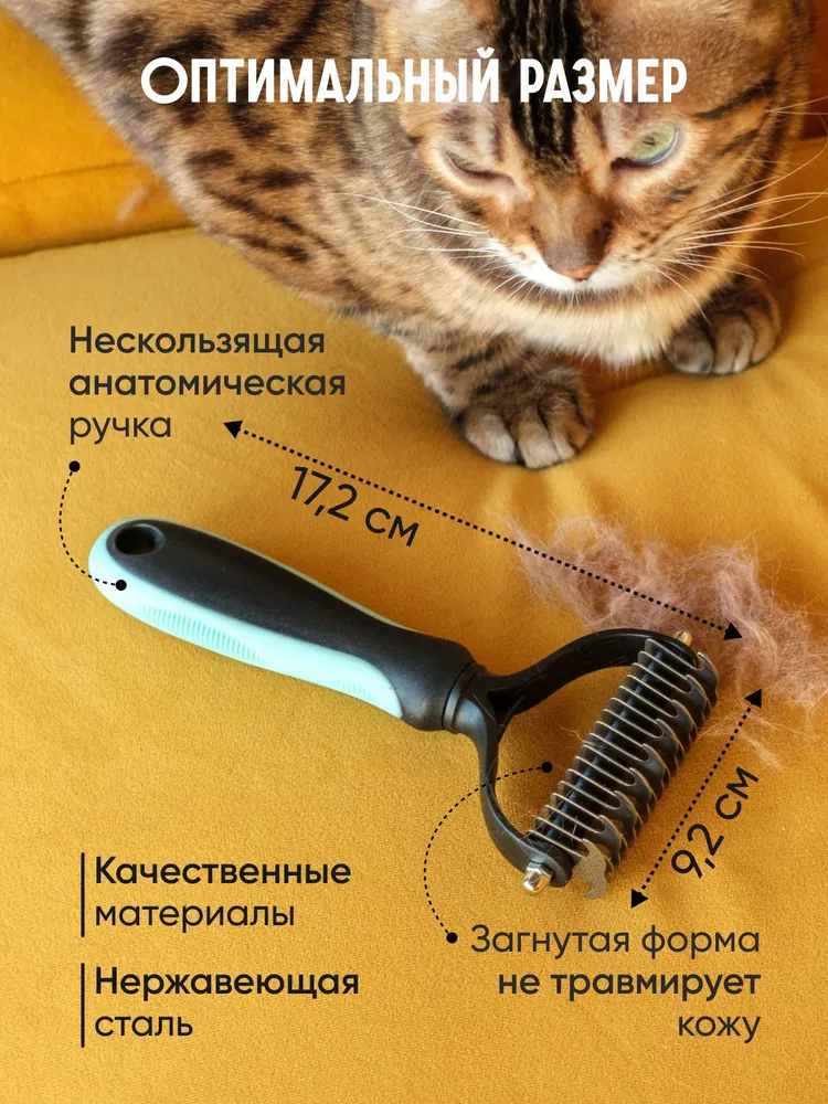 Дешеддер и колтунорез для кошек и собак – это универсальный инструмент, который отлично подходит для пород с длинной, средней, густой или редкой шерстью.Дешеддер и колтунорез 2 в 1Инструмент имеет две рабочие поверхности для груминга. На одной стороне расположены 9 зубьев для распутывания колтунов и шерсти с сильными завитками. На другой стороне – 17 зубьев для вычесывания отмершего волоса и подшерстка.Удобство