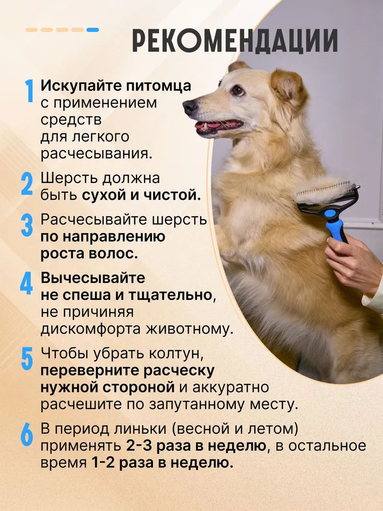 Колтунорез-дешеддер – это многофункциональный инструмент для ухода за шерстью домашних животных. Он состоит из двух частей: колтунореза и дешеддера.Колтунорез помогает справиться с колтунами в шерсти питомца. Его лезвия заточены под правильным углом, что позволяет срезать колтуны, не причиняя вреда основному волосу. Расстояние между лезвиями оптимальное, что позволяет срезать колтуны, не дёргая их. Дешеддер – это инструмент для удаления подшёрстка у собак и кошек. Он работает по принципу триммера: убирает лишний подшёрсток и отмершие волоски, не повреждая остевой волос. Лезвия дешёддера заточены под правильным углом. Рукоятка инструмента выполнена из высококачественного пластика с прорезиненной накладкой, что обеспечивает комфорт при использовании. После использования колтунореза-дешеддера его можно подвесить на крючок благодаря отверстию для хранения.Все модели колтунорезов-дешеддеров предназначены для домашнего груминга. Особенности использования инструмента зависят от породы, размера питомца, густоты и плотности его шерсти.Внимание! Не рекомендуется использовать инструмент для питомцев с заболеваниями или повреждениями кожного покрова, а также для пород без подшёрстка или с особенным типом шерсти.В период активной линьки специалисты рекомендуют вычёсывать подшёрсток 1-2 раза в неделю. В другое время процедуру можно проводить реже – примерно 1-2 раза в месяц. Для короткошерстных пород достаточно 6-8 процедур в год.Широкий ассортимент товаров для животных! Всё для пушистых друзей!Когтерезы