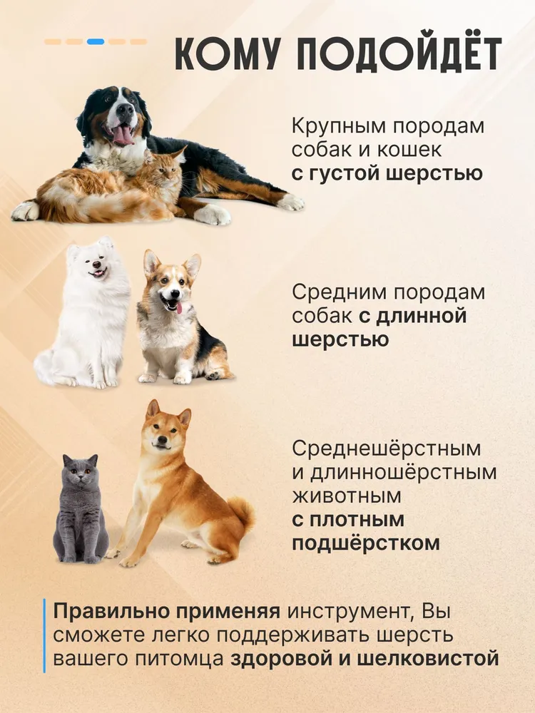 Для длинношерстных пород, Для среднешерстных пород, Для короткошерстных пород