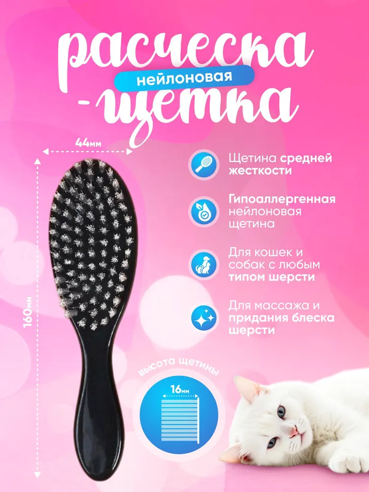 Она предназначена для расчесывания, распутывания колтунов и свалявшейся шерсти. Подходит для собак и кошек с шерстью любой длины. Нейлоновая щетина сделает процедуру безопасной даже для животных с чувствительной кожей. А так же она служит прекрасным массажером. Уход за Вашим питомцем станет простым и комфортным.Когтерезка