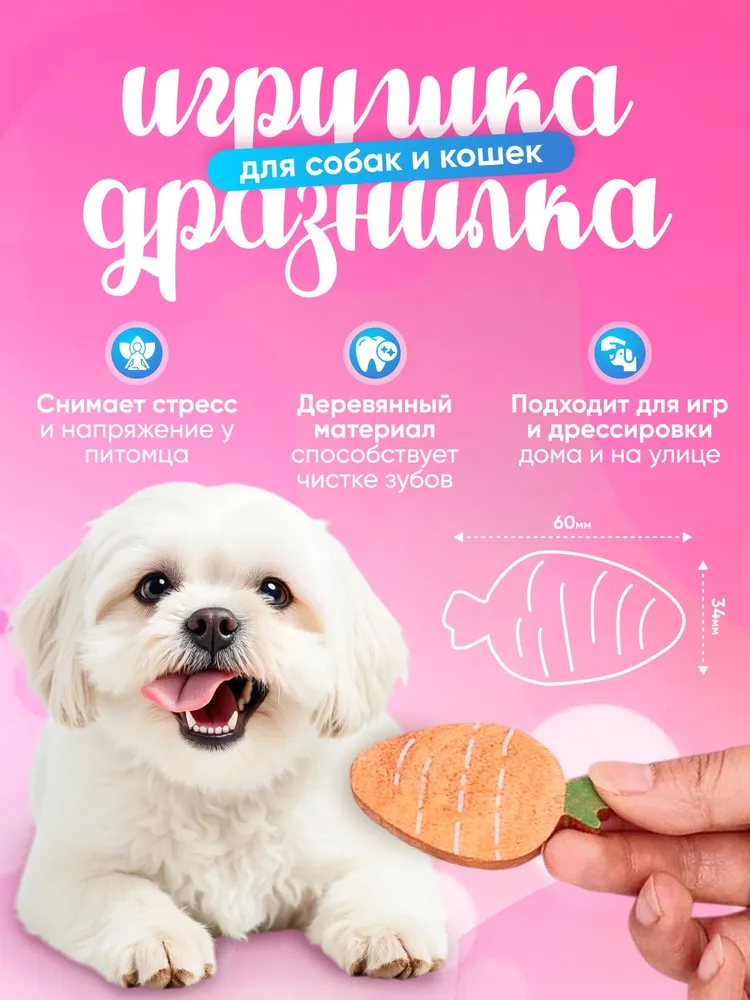 Игрушка сделана из дерева. Для домашних животных становятся всё более популярными благодаря своей экологии, безопасности и функциональности. Эти игрушки не только радуют питомцев, но и обеспечивают их безопасность, так как мы можем быть уверены, что они не содержат вредных химических веществ. Игрушки из дерева могут оказывать значительное положительное влияние на здоровье домашних животных. Прежде всего, такие игрушки способствуют естественным инстинктам жевания и грызения. Жевание помогает очистить зубы от налета и предотвращает развитие зубного камня, снижая риск заболеваний полости рта.Упаковка