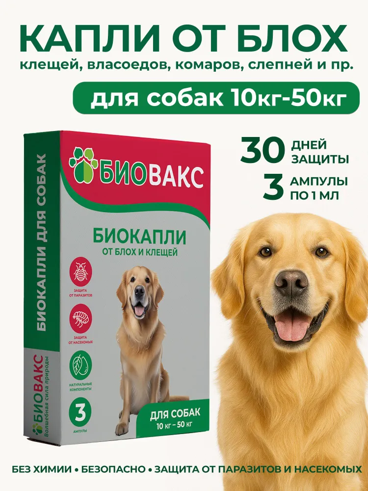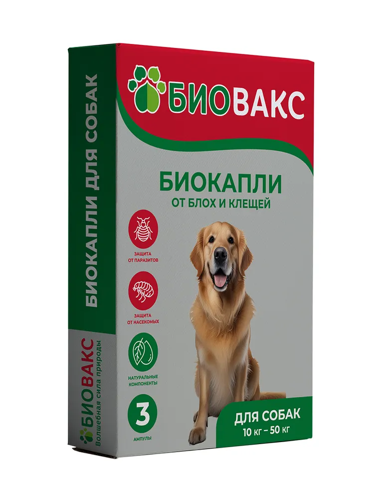 Натуральные капли на холку от блох и клещей для собак Биовакс «Паразиты? Нет!» – безопасная защита от паразитов и насекомых в сезон активности