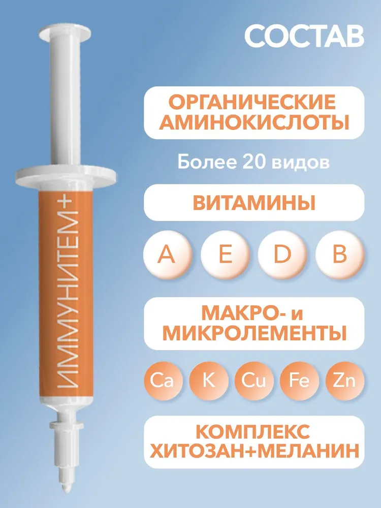 Развернутый состав: сырой протеин, сырой жир, комплекс хитозан-меланин, органические аминокислоты животного происхождения: метионин, лизин, валин, треонин, изолейцин, фенилаланин, лейцин, триптофан, аргинин, гистидин, аспарагиновая кислота, серин, глицин, изолейцин, тирозин, глутаминовая кислота, цистеин, аланин, жирные кислоты, макро- и микроэлементы: кальций, фосфор, медь, железо, цинк, витамины: А-7000 МE, D-15015-ME, E-31,7 мг, B- 0,54 мг. Вспомогательные вещества: молочная кислота, вода дистиллированная.C заботой о ваших самых близких ❤команда STURDY