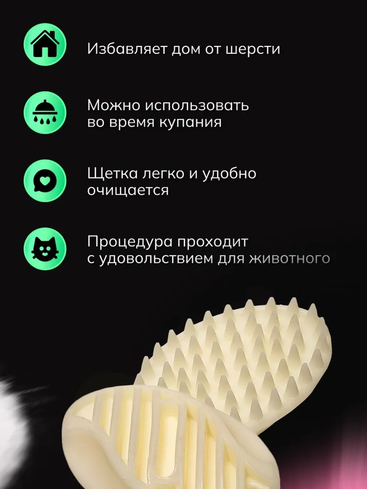 Щетка силиконовая для собак и кошек - это уникальная щетка для щадящего и эффективного ухода за шерстью вашего питомца. Она нежно и безопасно удаляет загрязнения и скопившиеся волосы, обеспечивая комфортный процесс груминга коты. Этот инструмент вычесыватель идеально подходит для вычесывания и удаления колтунов у длинношерстных и короткошерстных кошек и собак. Он также подходит для ухода за шерстью грызунов, таких как хомяки или кролики, помогая им поддерживать гладкую и здоровую шерсть. Расчесывание шерсти вашего питомца - это важный аспект ухода, который помогает поддерживать ее в прекрасном состоянии. С помощью этой щетки вы сможете легко и эффективно вычесывать излишние волосы, предотвращая такие проблемы, как запутанность и путание шерсти. Силиконовые зубья расчестка мягко проникают в глубину короткой шерсти, помогая удалить даже самые мелкие загрязнения и не травмируют животное в отличии от дешеддер, пуходерка и фумигатор, фурминатор. Они массируют кожу животного, стимулируя кровообращение и помогая в борьбе с перхотью и обновлению новой шерсти. Она также может быть использована во время купания, мытья питомца как мочалка. С ее помощью вы сможете равномерно распределить шампунь по шерсти, сделать кожу чистой и здоровой, а шерсть блестящей и гладкой. Удобная форма расчески обеспечивает комфортное использование. Она идеально подходит для использования дома. Расческа для кошек и собак является незаменимым товары инструментом аксессуары для всех, кто заботится о здоровье и красоте кота своих домашних животных. Она поможет вам сэкономить время и деньги, предотвратить неприятные проблемы с шерстью и поддерживать шерсть вашего питомца в прекрасном состоянии. Теперь вы можете легко и эффективно вычесывать шерсть ваших котов, собака, хорьков с помощью этой удивительной массажной щеточка. Позвольте вашим домашним любимцам наслаждаться уходом и выглядеть настоящими звездами благодаря Расческе для кошек, и собак. Cat зоотовары скребок колтунорез кошачьей.