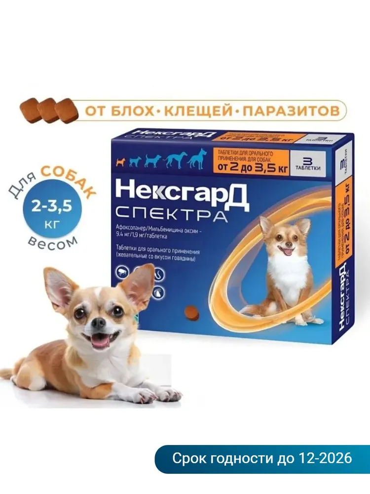 Спектра жевательная таблетка от клещей и блох_для собак весом 2-3,5 кг_срок годности 12-2026г
