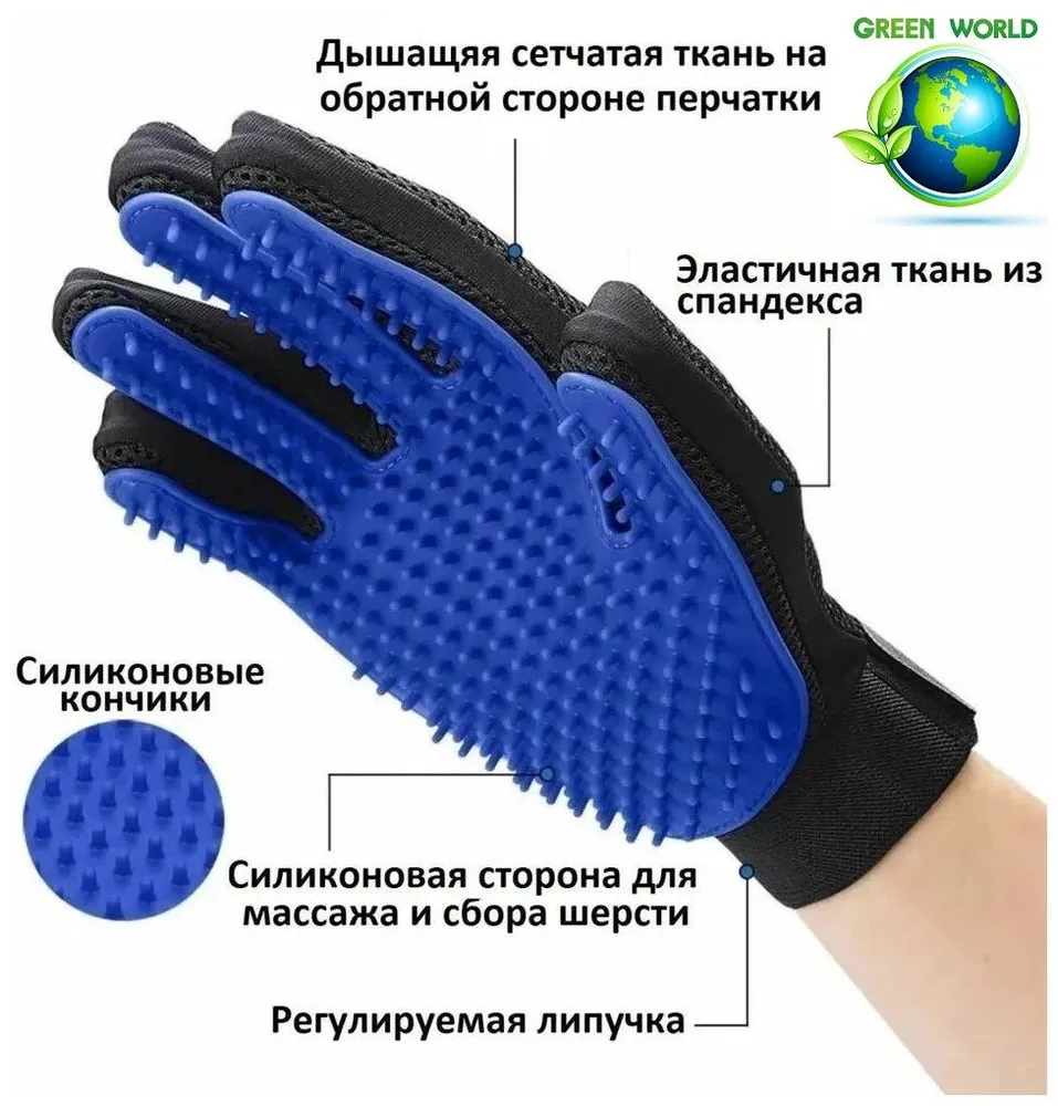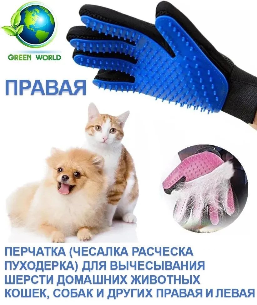 Перчатка (чесалка расчёска пуходерка) для вычесывания шерсти домашних животных кошек, собак и других.Данная перчатка для бережного и комфортного вычесывания шерсти в форме перчатки позволяет эффективно вычесывать шерсть питомца. Силиконовая щетка варежка идеально подойдет для вычёсывания всех типов шерсти кошек, собак, кроликов, шиншилл и других домашних животных, а также лошадей.Пуходерка, расческа для груминга, фуминатор – эти все названия можно отнести к уникальному устройству – перчатке чесалке для вычесывания шерсти кошек и собак. Щетка для собаки, щетка для кошки позволяет привести шерсть питомца в норму. Благодаря силиконовым зубчикам, чесалка для котов обладает массажным эффектом, ни чем не уступая специальной массажной расческе для собак и кошек.Фурминатор для кошек, фурминатор для собак оснащен силиконовыми пупырышками. Для использования наденьте расческу для собаки и кошки на руку и застегните липучку. После процедуры помойте чесалку для кошек в теплой воде с мылом. Перчатка расческа объединяет в себе следующие функции:- перчатка для вычесывания шерсти для кошек и котов- заменяет гребешок для вычесывания шерсти собаки и кошки- расческа пуходерка для собак и кошек- щетка для удаления шерсти кошек и собак- кошачья расческа- силиконовая щетка для собак и кошек- массажная расческа щетка для собак и кошек- перчатка для вычесывания шерсти- перчатка расческа для кошек и собак- массажер для кошек и собак- щетка для груминга кошек и собак- щетка чесалка для кошек и собак- перчатка щетка для вычесывания шерсти- рукавица для вычесывания шерсти