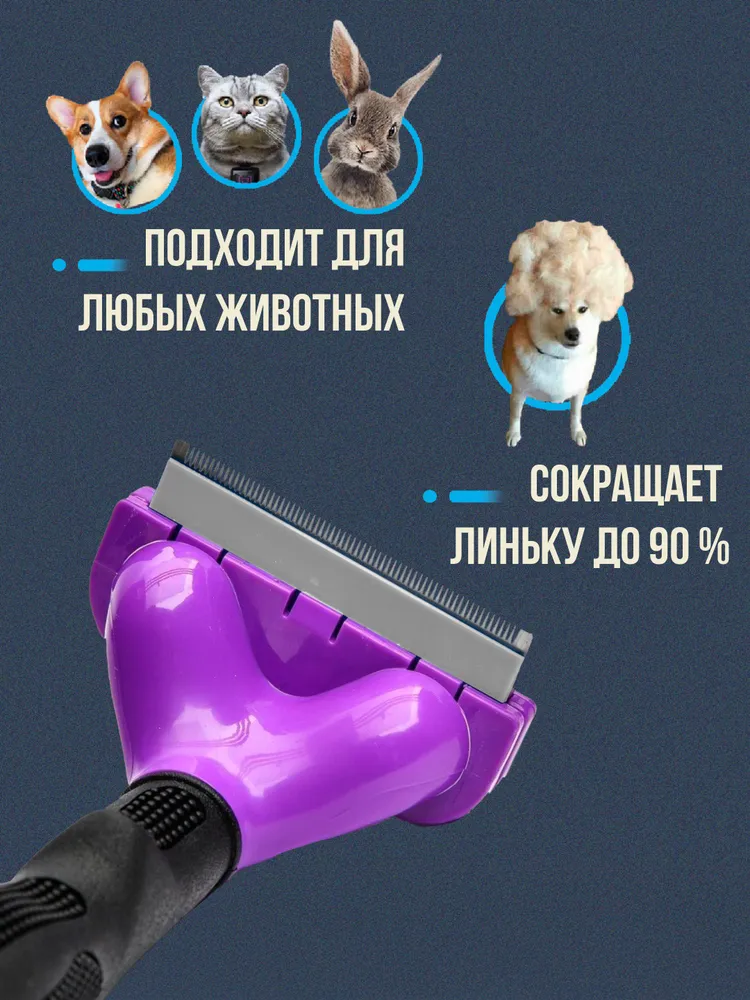 Что такое Дешеддер и зачем он нужен?Дешеддер - это специально разработанный инструмент для высевания шерсти животных. Он поможет Вам вычесать весь отмерший подшесток питомца который как правило остается на одежде или мебели.Нержавеющая сталь
