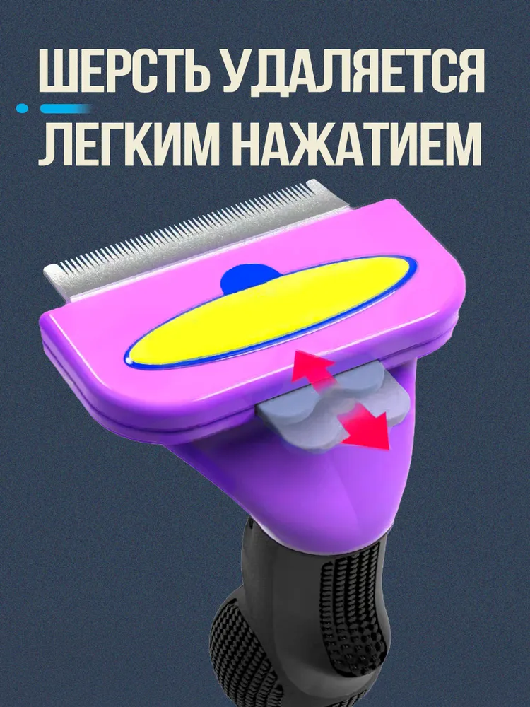Когда собирается много шерсти на гребне её очень просто удалить одним нажатием кнопки и легким движением руки.Подходит для любой шерсти