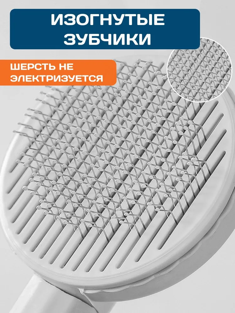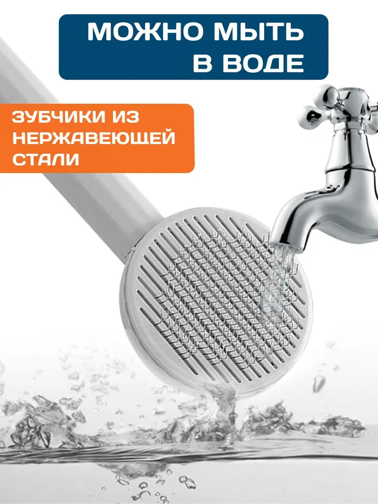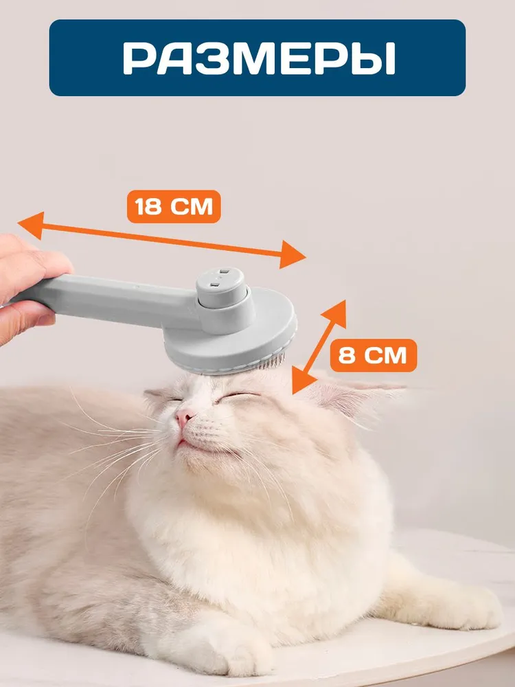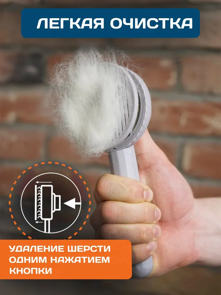 Имеет удобную ручку, а размер подходит для вычесывания кошек и собак любых пород и размеров.Легкая очистка