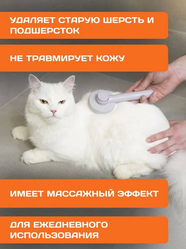 При регулярном использовании расчески линька снижается до 90%Безопасная и приятная процедура для питомца