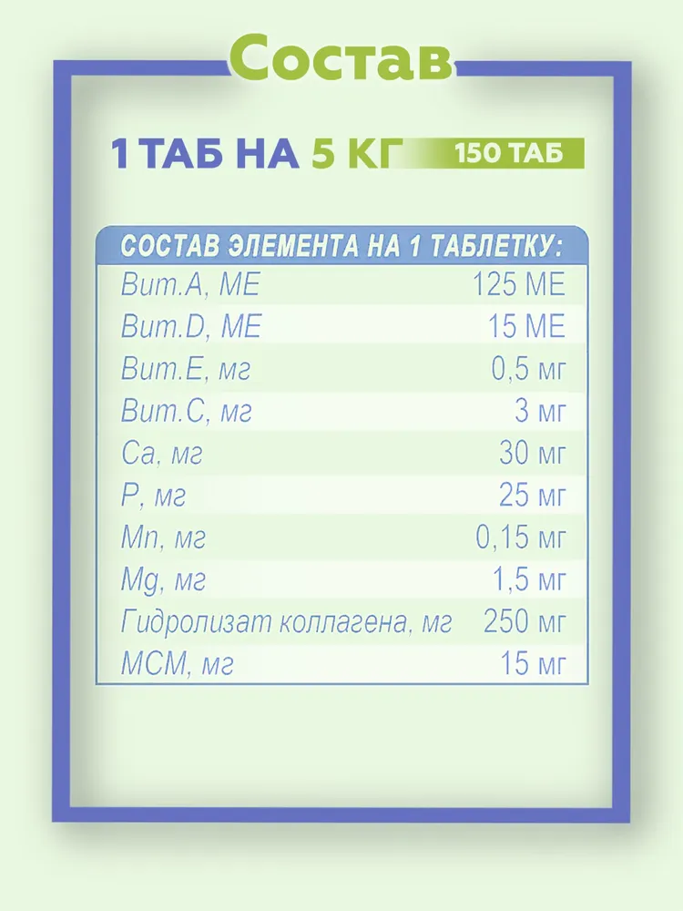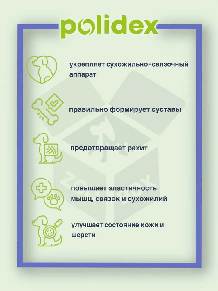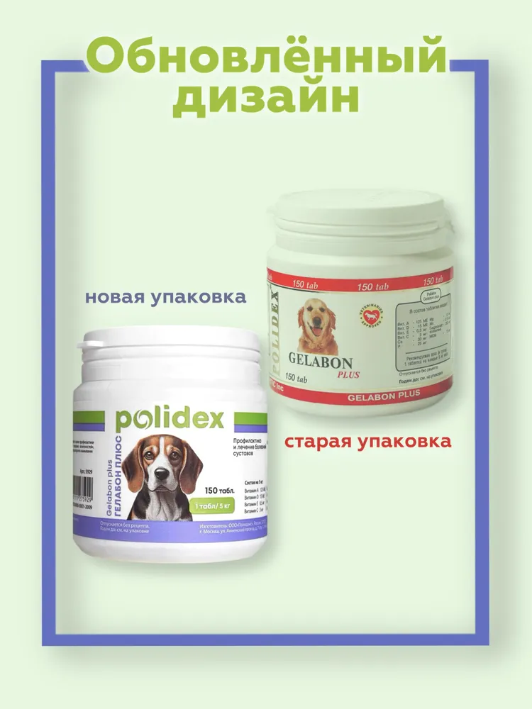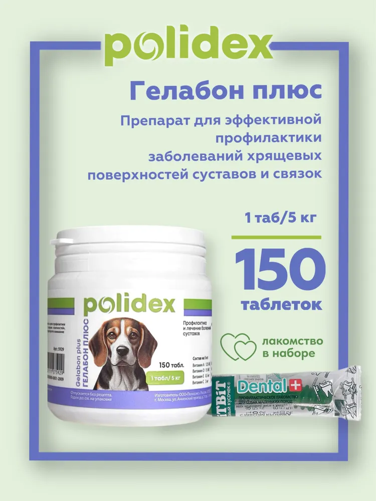 Хотите, чтобы ваш верный друг всегда радовал вас активностью и жизнерадостностью? Здоровье суставов – основа долгой и счастливой жизни!Polidex Gelabon Plus 150 – Ваш надежный помощник в поддержании здоровья опорно-двигательного аппарата питомца.Этот эффективный хондропротектор для собак, разработанный для профилактики заболеваний хрящевых поверхностей суставов и связок, идеально подходит как для витамины для щенков, так и для пожилых собак. Особенно важен этот препарат в период активного роста щенков крупных и средних пород, когда их суставы и кости испытывают повышенную нагрузку.Этот препарат для собак поможет обеспечить правильное формирование хрящевой ткани, снизить риск развития заболеваний суставов в будущем, а также ускорить реабилитацию после травм и операций на опорно-двигательном аппарате. Кроме того, эти витамины для собак положительно влияют на состояние кожи и шерсти.Препарат способствует:• Поддержанию здоровья суставов и связок• Профилактике заболеваний хрящевых поверхностей• Улучшению подвижности и снижению дискомфорта• Правильному формированию суставов у щенков крупных и средних пород• Постановке ушных раковин (для ушей)Гелабон Плюc содержит все необходимые компоненты для укрепления хрящевой ткани, повышения эластичности связок и снижения воспаления.Эти таблетки для собак для суставов – отличный выбор для собак любого возраста, а Polidex позаботится о здоровье и подвижности вашего питомца на каждом этапе его жизни!Выбирая Полидэкс Гелабон Плюс 150 для собак , Вы выбираете активную и счастливую жизнь для своего любимца!Способ применения:Рекомендуется давать во время еды 1 раз в сутки.1 таблетка на 5 кг веса собаки, выбирая дозировку ориентируйтесь на вес своей собаки.Применяется в течении 1-3 месяца до 3-х раз в год.