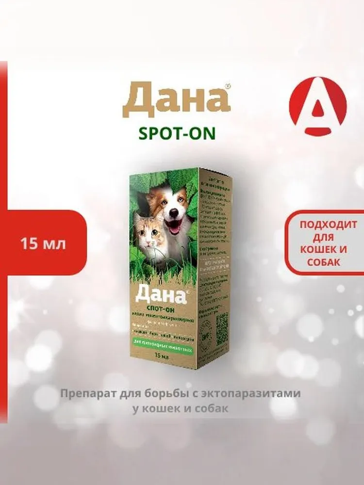 Дана Спот-он назначают собакам и кошкам с 12-недельного возраста для лечения и профилактики энтомозов, вызываемых блохами, вшами и власоедами; акарозов, вызываемых саркоптоидными, иксодовыми и демодекозными клещами, пушным зверям — для лечения и профилактики отодектоза. Преимущества: - Защита от всех наружных паразитов 4 — 6 недель.- Эффект уже через 24 часа после нанесения.- Удобство применения.