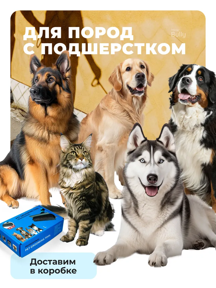 Расческа для больших собак и кошек с изогнутым лезвием длиной 10 см повторяет контуры тела питомца. Вычесывание происходит в 1,5 раза быстрее, чем с использованием обычного дешеддера, а массажный эффект еще более выраженный. V-образные металлические зубья, расстояние между которыми 1 мм, легко проникают в густую короткую шерсть быстро удаляя отмерший подшерсток.