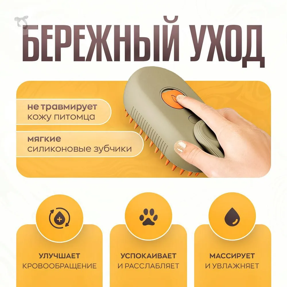 Силиконовые зубчики на паровой щетке для кошек и собак обладают отличными массирующими свойствами, которые помогают стимулировать кровообращение и ускоряют рост здоровой шерсти. Эти зубчики мягко и эффективно удаляют лишнюю шерсть, комья и загрязнения, а также могут помочь предотвратить образование комков. Благодаря такому мягкому и бережному уходу, ваш питомец будет выглядеть прекрасно и чувствовать себя комфортно.Безопасность