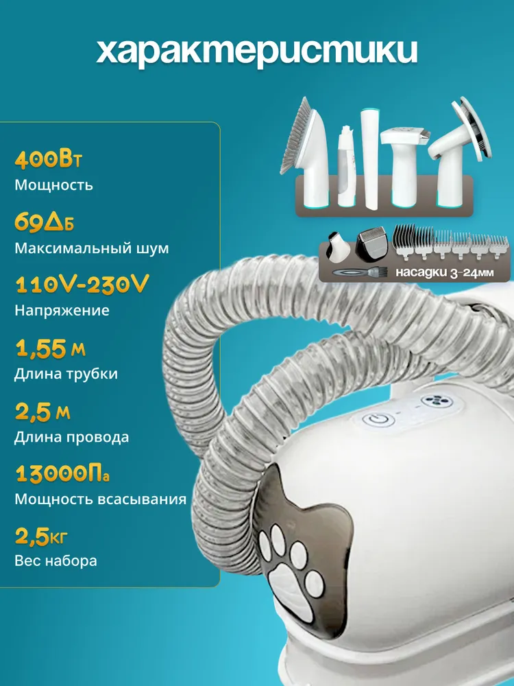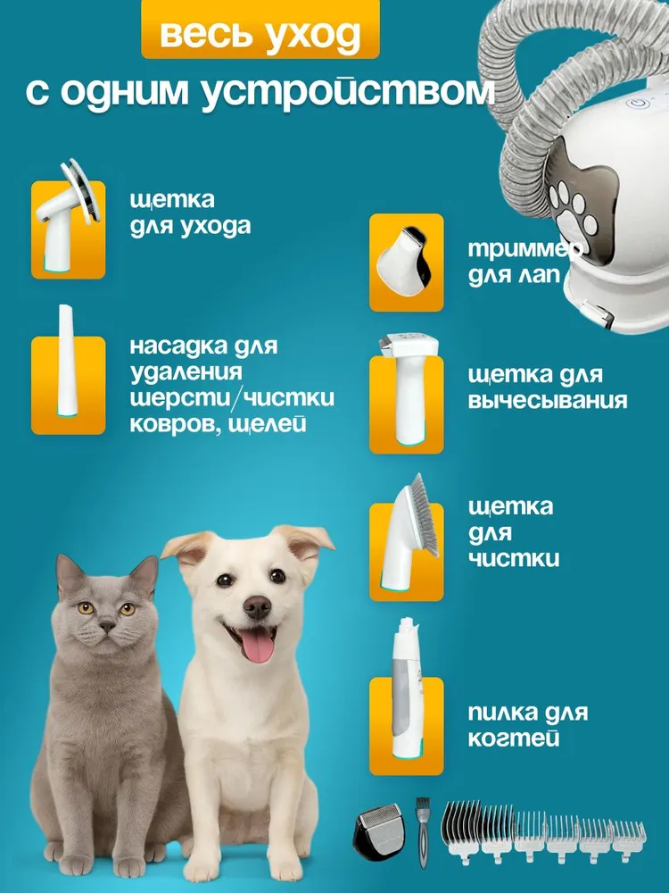 Набор для груминга собак и кошек, пылесос, машинка для стрижки собак, гриндер, щетка, насадки