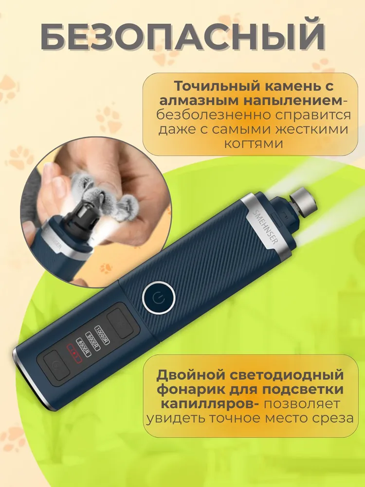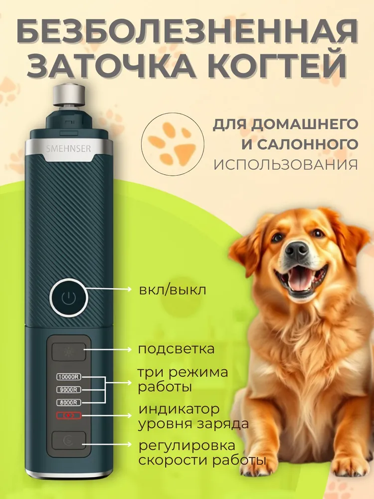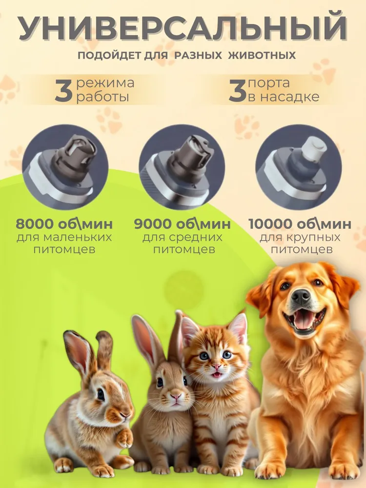 Гриндер для когтей собак и кошек с тремя скоростями вращения – это идеальное решение для безопасного и комфортного ухода за когтями ваших питомцев. Устройство подходит как для собак, так и для кошек, включая мелкие и крупные породы. Благодаря функции гриндера для когтей собак крупных пород, он эффективно справляется с толстыми и твердыми когтями, а в качестве гриндера для собак мелких пород обеспечивает деликатную обработку, предотвращая травмы. Когтерезка для собак оснащена мощным, но тихим мотором, что делает процесс стрижки когтей комфортным даже для самых пугливых животных. Груминг собак как домашний ритуал.Этот гриндер для когтей кошек и собак сочетает в себе удобство, безопасность и универсальность. Три скорости вращения позволяют выбрать оптимальный режим работы, будь то быстрая обработка или аккуратная шлифовка. Устройство идеально подходит как когтерезка для собак мелких пород, так и гриндер для когтей собак крупных пород, обеспечивая гладкий и ровный срез без риска повреждения сосудов. Компактный дизайн и эргономичная форма делают гриндер для собак и кошек незаменимым помощником в домашнем уходе за питомцами. Ножницы для собак для ногтей идеальное решение по комфортному уходу за когтями питомца