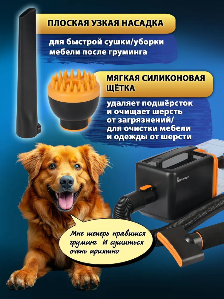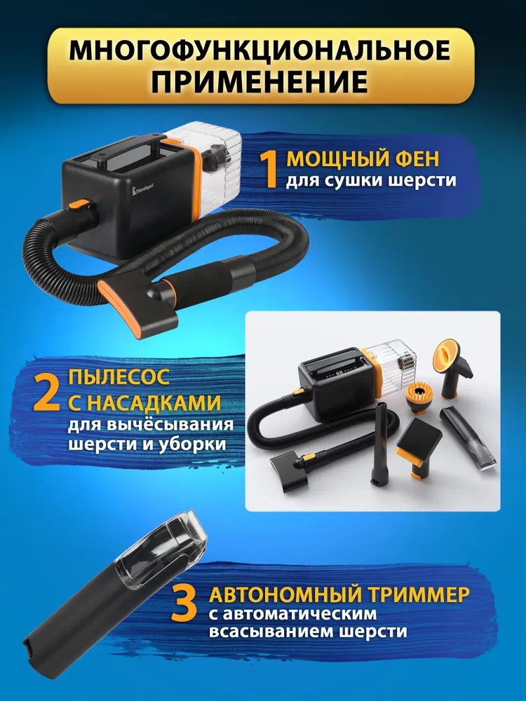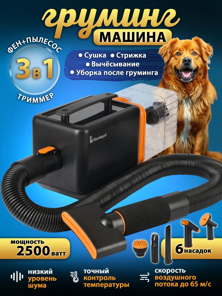 Nicedopet Многофункциональный набор для груминга с феном компрессором для животных, пылесосом и триммером. Машинка для стрижки животных, щетка, дешеддер, насадка для уборки, вакуумный сбор шерсти