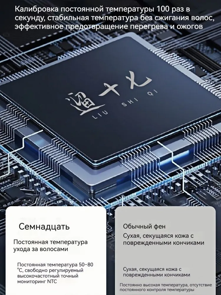 Па), которое эффективно выдувает воду даже из густой шерсти. Результаты внутренних тестов:Длинношерстная кошка: ~10 мин.Маленькая собака: ~10 мин.Средняя собака: ~15 мин.Крупная собака: ~25 мин.Скорость сушки может варьироваться в зависимости от условий.Безопасный Подогрев и Уход: Встроенный интеллектуальный чип 100 раз в секунду контролирует и точно регулирует температуру воздуха до комфортных 57°C. Это постоянная безопасная температура, которая предотвращает перегрев, сухость, ломкость шерсти и повреждение кожи питомца – в отличие от обычных фенов без контроля температуры.Идеальная Шерсть: Генератор 200 000 000 отрицательных ионов делает шерсть вашего любимца гладкой, блестящей и послушной после сушки.Тихая Работа: Уровень шума всего ≤65 д