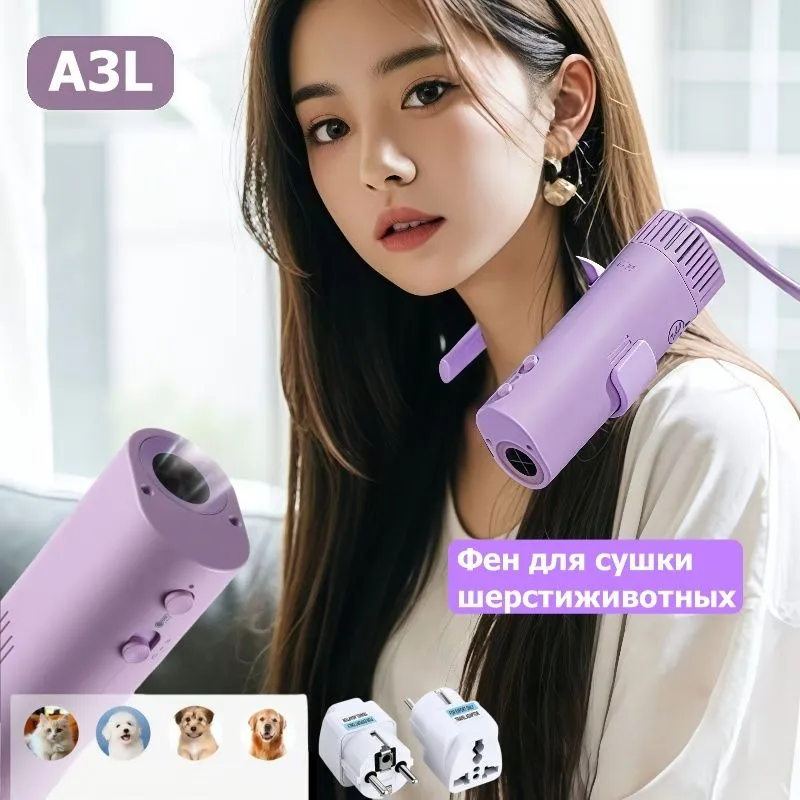 БКомплектация: Сушилка, крепление на шею, инструкция.Преимущества:Свобода рук: Удобно и легко сушить даже крупных или активных животных.Экстремально Быстро: Мощный поток воздуха сокращает время сушки в разы.Безопасно и Здорово: Постоянная температура защищает кожу и шерсть.Компактно и Легко: Идеально для дома, груминга и путешествий.Умный Уход: Отрицательные ионы для гладкой и блестящей шерсти.Простота Обслуживания: Самоочистка, съемный и моющийся фильтр, магнитная сетка."Туншици" LSQ-A3L Фиолетовый – это революция в сушке домашних животных! Подарите себе и своему питомцу комфорт, скорость и профессиональный уход после каждого купания.