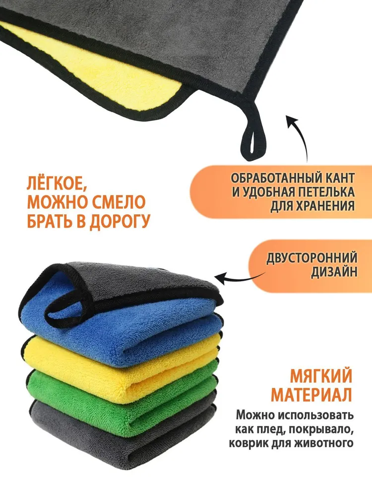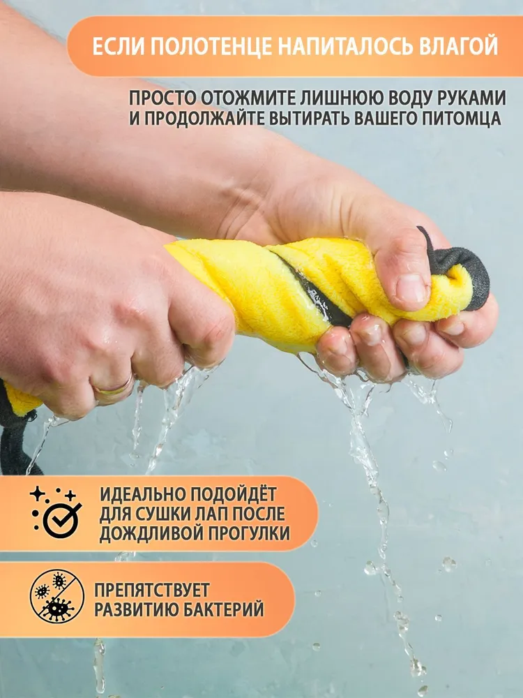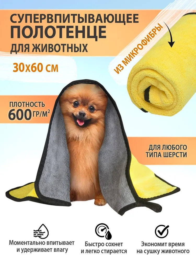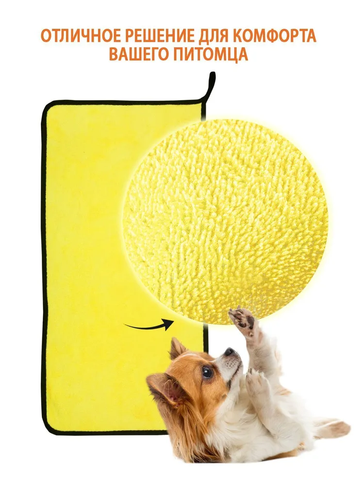 Полотенце из микрофибры идеально для ухода за любимыми питомцами. Легкое, компактное, впитывает влагу в 7 раз больше собственного веса. Подходит для животных с густой, длинной шерстью. Не маркие, в них не задерживается грязь и не остаётся пятен. Гиппоаллергенный материал, используются стойкие и не токсичные красители. Износостойкое, не теряет цвет и форму после многочисленных стирок. Отлично удаляет грязь. Благодаря наночастицам серебра в полотенце не задерживаются и не размножаются бактерии и запахи. Полотенце идеально для шерсти животных, придает блеск и мягкость. Сохнет быстрее обычных полотенец в 3-4 раза. Подходит для вытирания лапок, живота после прогулки. Плотность 600 г/м2. Обработано по периметру бейкой. Для удобства оснащено петелькой. Очень мягкая и комфортная текстура. Может использоваться в качестве подстилки или одеяла. Используйте супер впитывающее полотенце везде - в автомобиле, дома, на природе, в поездках. Гарантия 30 дней.