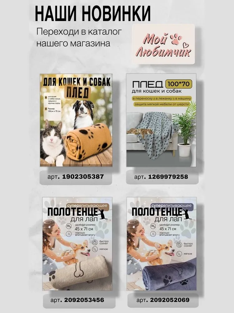 Оно идеально подходит как для собак,так и для кошек,что делает его универсальным решением для каждого дома с питомцем.Оно идеально подходит для домашнего использования,груминга,а также для поездок на выставки или прогулок на природе.Процесс ухода за животными становится проще и приятнее с таким аксессуаром. Полотенце для собак и кошек помогает сокращать время, которое вы тратите на сушки и уборку, давая возможность больше наслаждаться приятными моментами со своим питомцем.