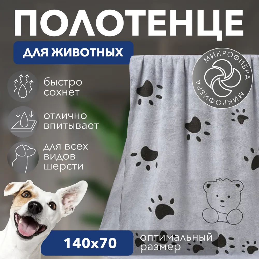 Полотенце для животных – незаменимый аксессуар для заботливых хозяев, который станет отличным подарком для вашего четвероногого друга. Супервпитывающее полотенце для собак из микрофибры, разработано специально для животных, обеспечивая им комфорт и сухость после приятных прогулок или купания. Полотенце для собак представляет собой идеальное сочетание стиля, практичности и нежности, созданное специально для ухода за вашим любимцем. Изготовленные из высококачественной микрофибры, они не только мягкие и приятные на ощупь, но и обладают уникальными впитывающими свойствами. Полотенце из микрофибры для собак изготовлено с использованием безопасных материалов, не вызывающих раздражения и аллергии у животных, мягкая и нежная текстура понравится вашему любимцу. Полотенце для кошек из микрофибры гипоаллергенно и не токсично, полностью безопасно для вашего питомца. За счет высокой плотности 400 г/м2 хорошо впитывает влагу - в 7 раз больше собственного веса, после многочисленных стирок не теряет цвет и форму. Полотенце для животных из микрофибры, имея оптимальный размер 140 см на 70 см, обеспечит уход для собак как крупных, так и мелких пород. Обработано по периметру бейкой. Подходит для вытирания лапок, живота после прогулки. Рекомендации по уходу: Деликатный режим стирки, не выше 30*,не использовать кондиционер и сушильную машину, не гладить. Полотенца серого цвета легки в уходе и могут использоваться не только дома, но и в путешествиях. Кроме сушки шерсти после мытья, невероятно мягкие полотенца также могут служить пледами или одеялами для вашего любимца. Наш зоотовар из микрофибры – незаменимый помощник после груминга. Сочетание функциональности и стиля – именно то, что делает наши полотенца для груминга идеальным подарком для вашего пушистого друга. Приобретая полотенце для собак и кошек у нас, вы получаете не только функциональный аксессуар, но и стильный подарок для вашего питомца.