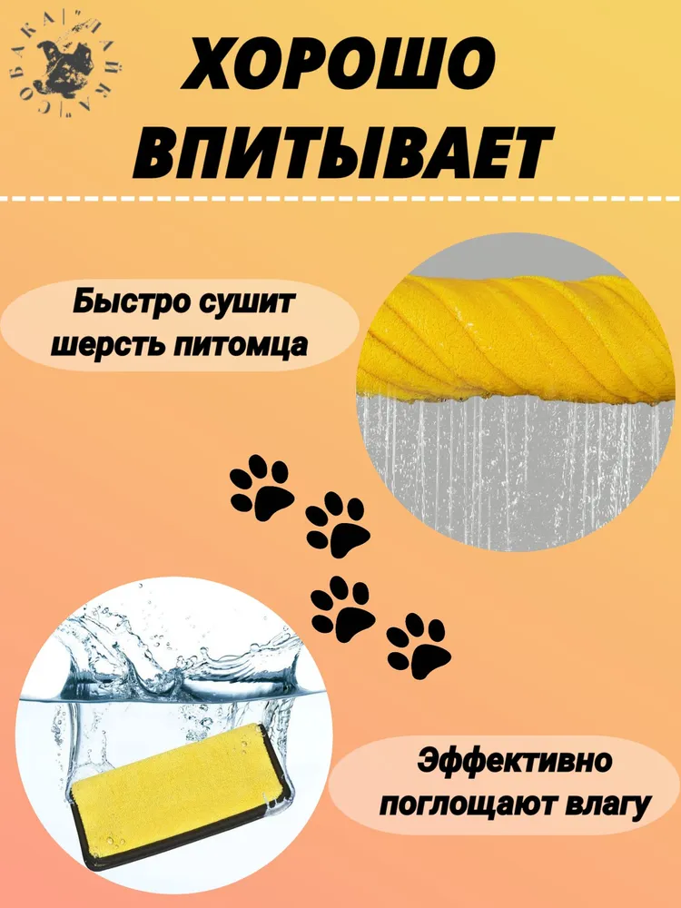 Полотенце для животных - это специально разработанный текстиль, предназначенный для сушки и ухода за домашними питомцами после купания. Оно изготовлено из мягкого быстросохнущего материала, микрофибра, который не раздражает кожу животного и обеспечивает приятные тактильные ощущения.Микрофибра
