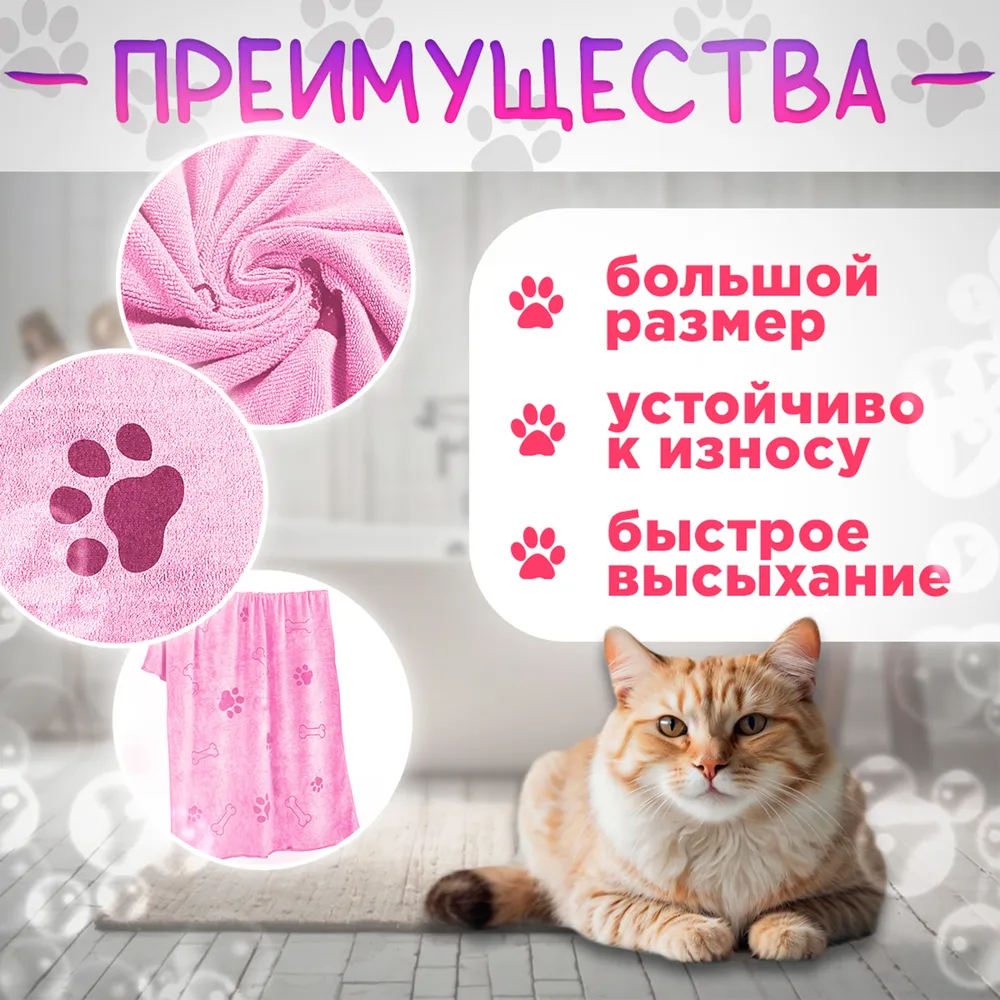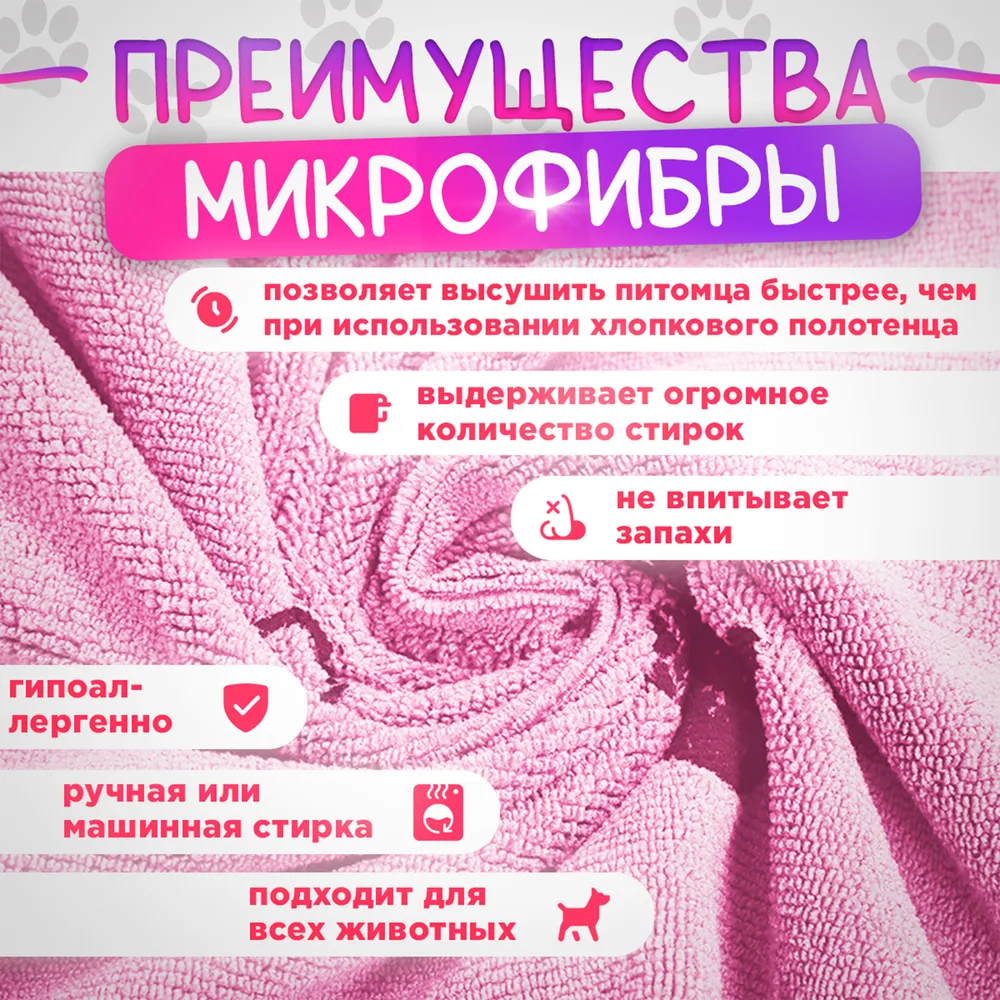 Полотенце для собак и кошек супервпитывающее из микрофибры – незаменимый аксессуар для ухода за вашими питомцами. Это полотенце с высокой поглощаемостью создано специально для того, чтобы быстро высушить вашего любимца после купания или прогулки в дождливую погоду. Благодаря использованию микрофибры, изделие эффективно впитывает влагу, оставаясь при этом легким и компактным.Полотенце идеально подходит как для собак, так и для кошек, что делает его универсальным выбором для всех любителей домашних животных. Оно особенно удобно после активных игр на улице, когда вашему питомцу необходимо быстро высохнуть, чтобы избежать холодов и простуды. Легкое в использовании и простое в уходе, полотенце можно стирать в машине, что значительно облегчает процесс ухода за ним.Размер полотенца достаточно большой, что обеспечит комфорт при сушке даже крупных пород собак. Супервпитывающая способность делает это полотенце незаменимым помощником в период линьки или после купания. Оно также может использоваться для вытирания лап собак после прогулки, что помогает поддерживать чистоту в вашем доме.С его помощью вы сможете не только заботиться о здоровье своего питомца, но и сохранить уют и чистоту в вашем доме. Используйте это качественное полотенце для животных, и вы оцените, насколько легко и удобно заботиться о вашем любимце. Создайте комфортные условия для своего питомца, воспользовавшись этим практичным изделием. Покупая полотенце для собак и кошек из микрофибры, вы делаете шаг к улучшению качества ухода за своим любимцем.