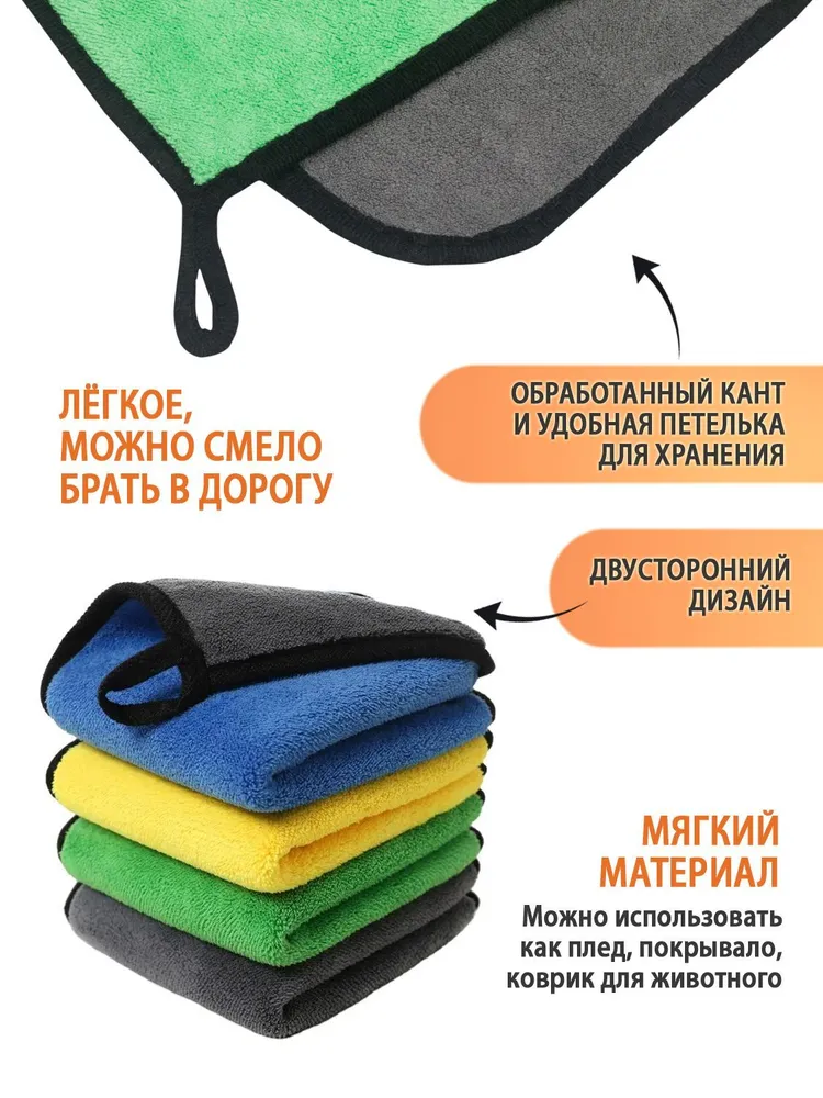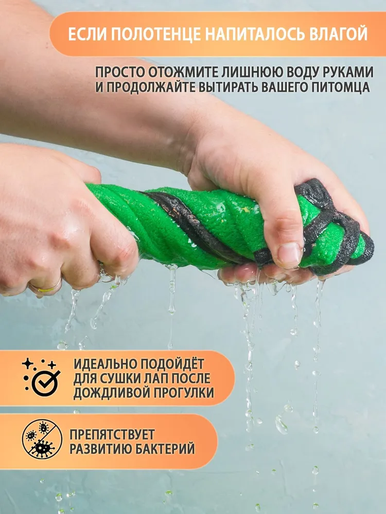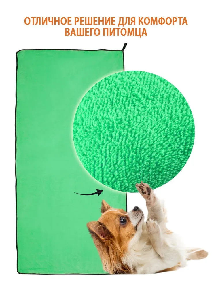 Полотенце из микрофибры идеально для ухода за любимыми питомцами. Легкое, компактное, впитывает влагу в 7 раз больше собственного веса. Подходит для животных с густой, длинной шерстью. Не маркие, в них не задерживается грязь и не остаётся пятен. Гиппоаллергенный материал, используются стойкие и не токсичные красители. Износостойкое, не теряет цвет и форму после многочисленных стирок. Отлично удаляет грязь. Благодаря наночастицам серебра в полотенце не задерживаются и не размножаются бактерии и запахи. Полотенце идеально для шерсти животных, придает блеск и мягкость. Сохнет быстрее обычных полотенец в 3-4 раза. Подходит для вытирания лапок, живота после прогулки. Плотность 500 г/м2. Обработано по периметру бейкой. Для удобства оснащено петелькой. Очень мягкая и комфортная текстура. Может использоваться в качестве подстилки или одеяла. Используйте супер впитывающее полотенце везде - в автомобиле, дома, на природе, в поездках. Гарантия 30 дней.