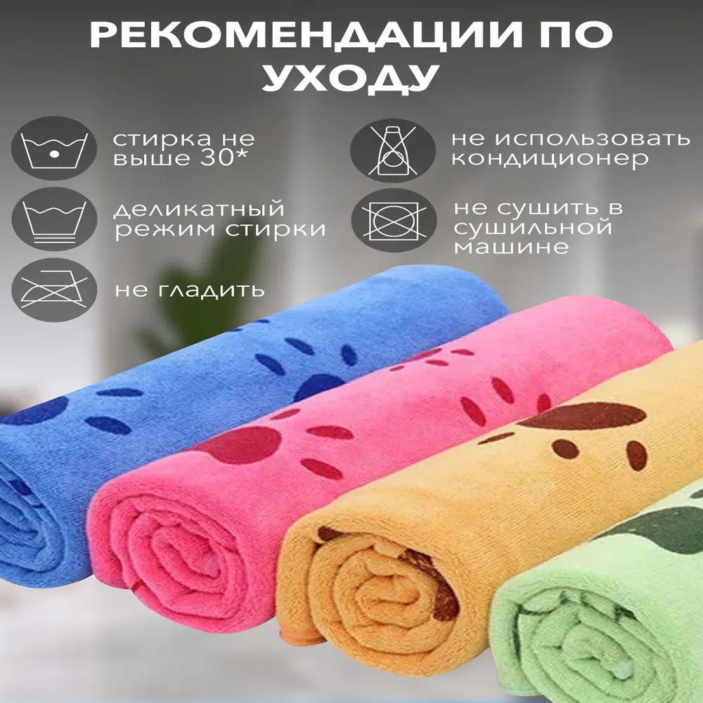 Полотенце для собак и кошек, супервпитывающее из микрофибры
