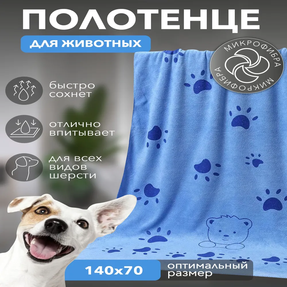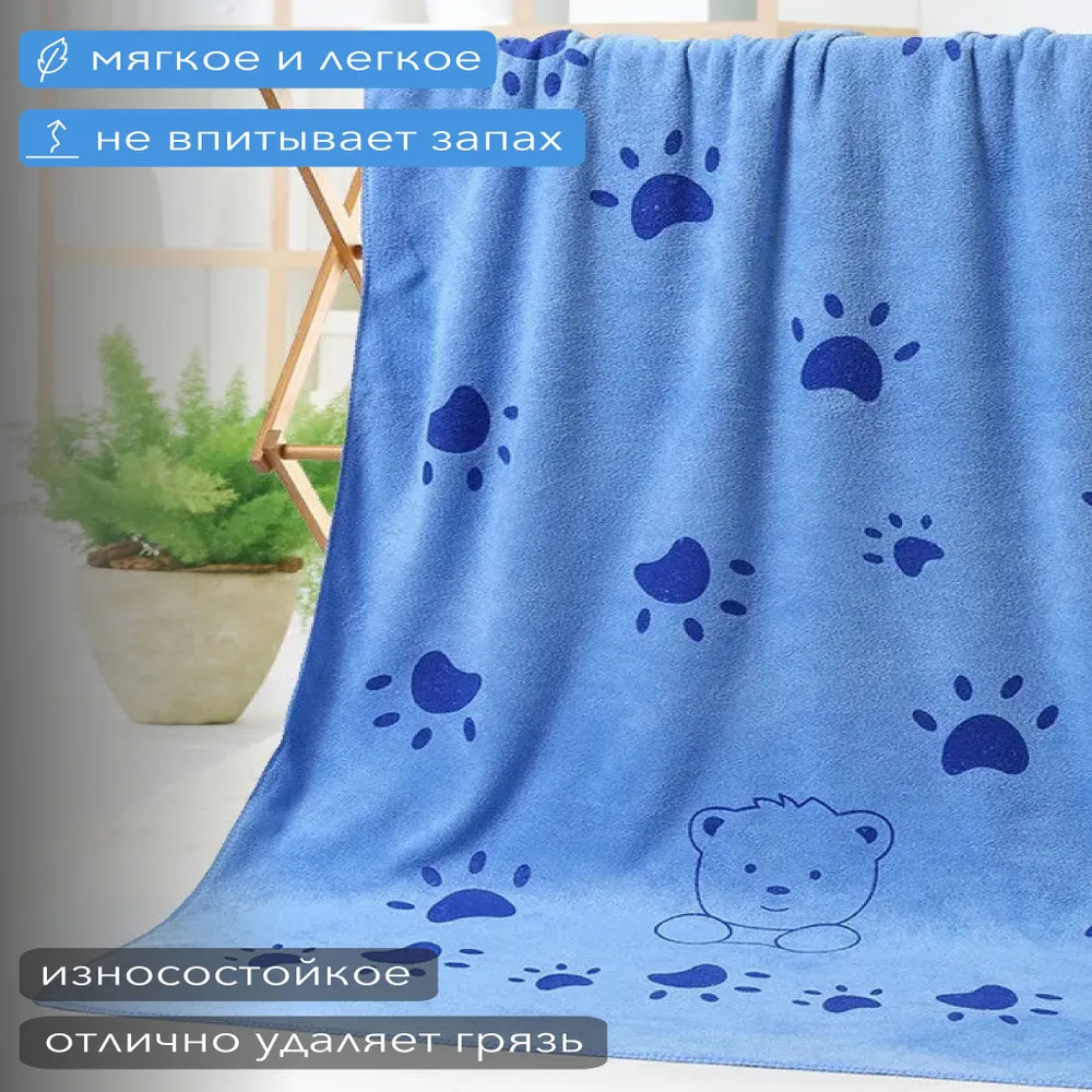 Полотенце для животных – незаменимый аксессуар для заботливых хозяев, который станет отличным подарком для вашего четвероногого друга. Супервпитывающее полотенце для собак из микрофибры, разработано специально для животных, обеспечивая им комфорт и сухость после приятных прогулок или купания. Полотенце для собак представляет собой идеальное сочетание стиля, практичности и нежности, созданное специально для ухода за вашим любимцем. Изготовленные из высококачественной микрофибры, они не только мягкие и приятные на ощупь, но и обладают уникальными впитывающими свойствами. Полотенце из микрофибры для собак изготовлено с использованием безопасных материалов, не вызывающих раздражения и аллергии у животных, мягкая и нежная текстура понравится вашему любимцу. Полотенце для кошек из микрофибры гипоаллергенно и не токсично, полностью безопасно для вашего питомца. За счет высокой плотности 400 г/м2 хорошо впитывает влагу - в 7 раз больше собственного веса, после многочисленных стирок не теряет цвет и форму.Полотенце для животных из микрофибры, имея оптимальный размер 140 см на 70 см, обеспечит уход для собак как крупных, так и мелких пород. Обработано по периметру бейкой. Подходит для вытирания лапок, живота после прогулки. Рекомендации по уходу: Деликатный режим стирки, не выше 30*,не использовать кондиционер и сушильную машину, не гладить. Полотенца синего цвета легки в уходе и могут использоваться не только дома, но и в путешествиях. Кроме сушки шерсти после мытья, невероятно мягкие полотенца также могут служить пледами или одеялами для вашего любимца. Наш зоотовар из микрофибры – незаменимый помощник после груминга. Сочетание функциональности и стиля – именно то, что делает наши полотенца для груминга идеальным подарком для вашего пушистого друга. Приобретая полотенце для собак и кошек у нас, вы получаете не только функциональный аксессуар, но и стильный подарок для вашего питомца.