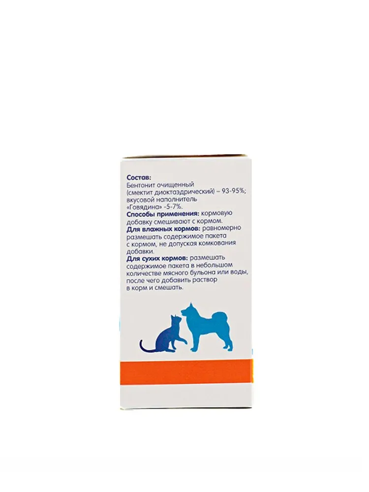 Кормовая добавка Зоосмектус используется для нормализации пищеварения у собак и кошек:Эффективно устраняет: диарею, вздутие, газы, расстройства пищеварения, угнетение работы ЖКТ, жидкий кашицеобразный стул при стрессе и аллергии.Ускоряет процесс восстановления ослабленных истощенных питомцев после болезни и операции, после приема глистогонных средств и обработки от клещей.Рекомендован для включения в схему лечения заболеваний ЖКТ в составе комплексной терапии при применении с антибиотиками согласно инструкции.Хорошо показывает себя в питомниках при назначении беременным питомцам в период вынашивания и кормления. Сохранность приплода, а также как профилактика энтерита в начальной период подкормки.Снимает интоксикацию любого вида. Восполняет (дефицит макро- микро- минералов) минеральный баланс.Способы применения:Размешать один пакетик в 100 граммах теплой воды (35-40 градусов), равномерно вылить на поверхность корма.Для приема без корма набрать в шприц и принудительно дать питомцу.Для сухих кормов равномерно высыпать порошок на порцию корма.Дозировка:До 5 кг - 1 пакетик в сутки (для карликовых пород допускается разделение пакетика на 2 приема)От 5 до 25 кг - 2 пакетика в сутки