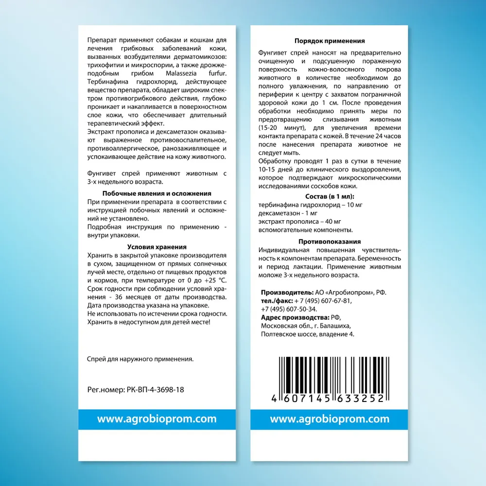 Спрей для лечения грибковых заболеваний кожи у животных
