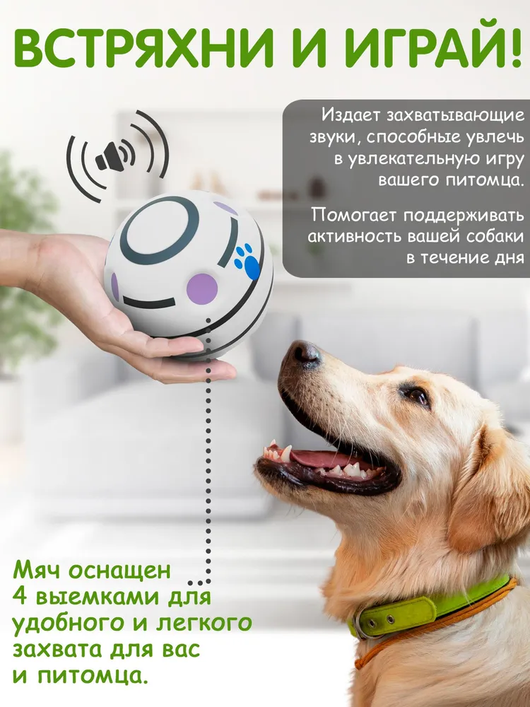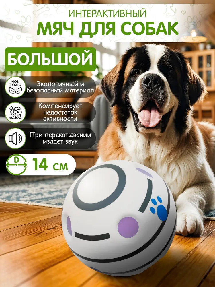 Крупный мяч для собак, диаметр 14 см. Игрушка интерактивная для собак средних, крупных пород, с пищалкой, смеющийся мяч wobble wag giggle