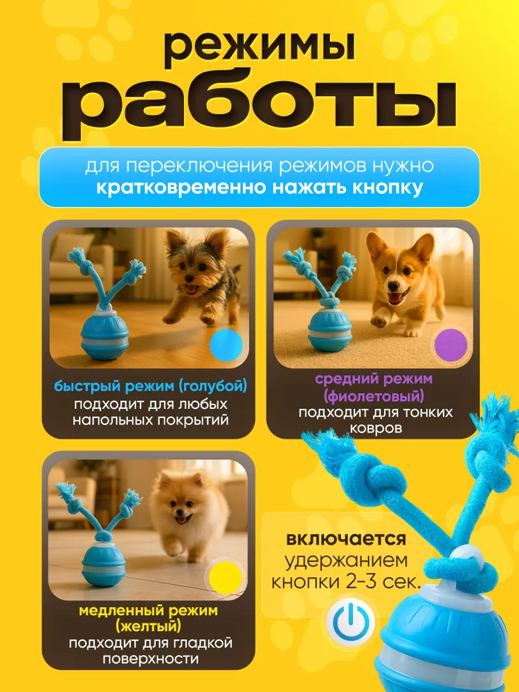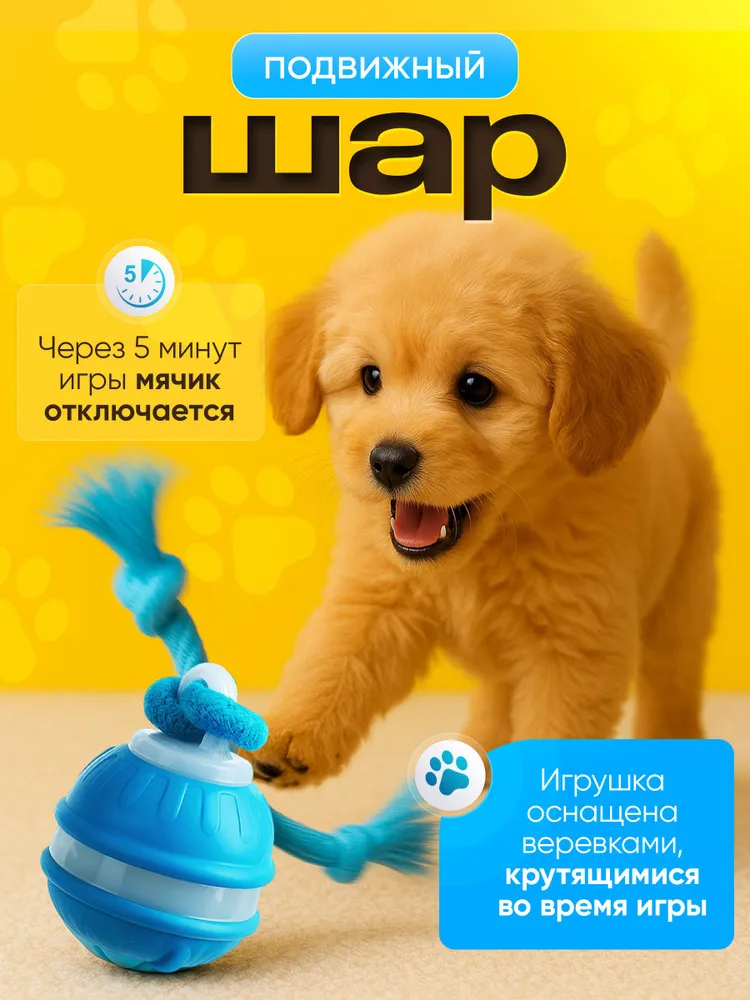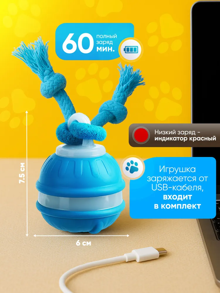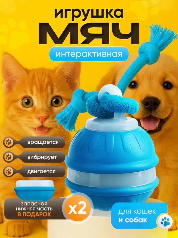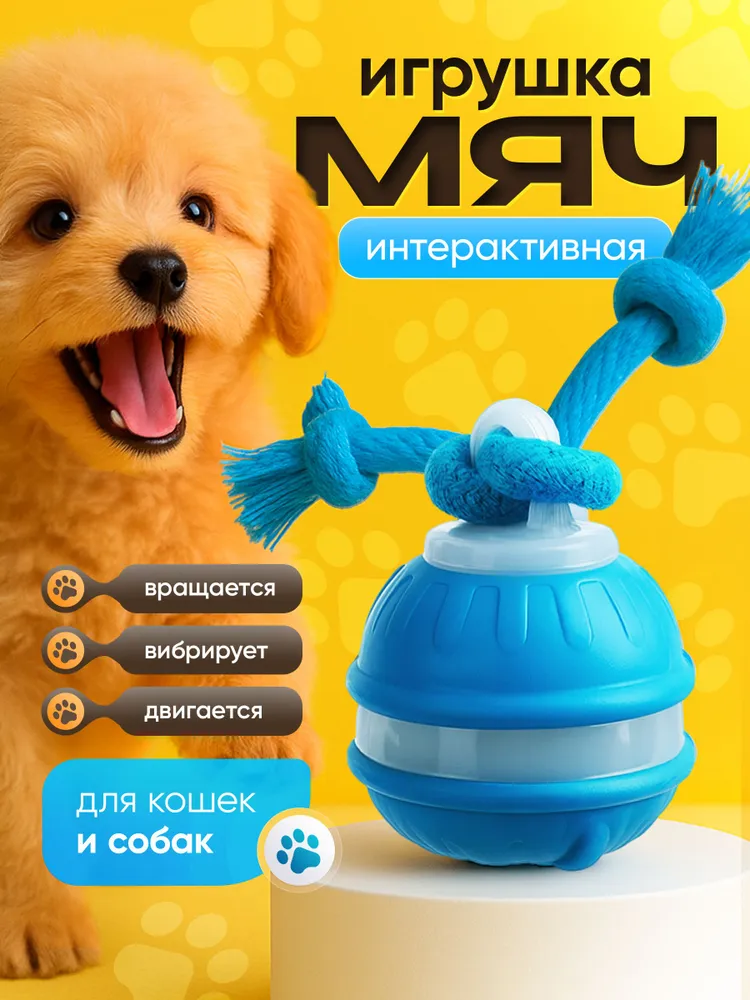 Интерактивная игрушка для кошек и собак – умный мяч для активных игр дома и на улице. Подходит для кошек, собак мелких и средних пород. Это не просто игрушка, а тренировка: развивает ловкость, реакцию, координацию движений и заботится о зубах и дёснах.Игрушка выполнена из безопасного силикона толщиной 0,2 мм и оснащена встроенным датчиком движения. Она автоматически отключается через 5 минут без активности. Умный мяч имеет 3 режима работы (вращение, вибрация, быстрая игра) и USB зарядку. Управлять можно через мобильное приложение.✅ Ключевые выгоды