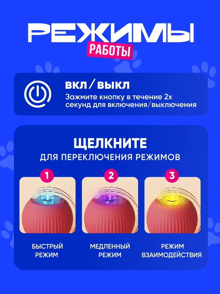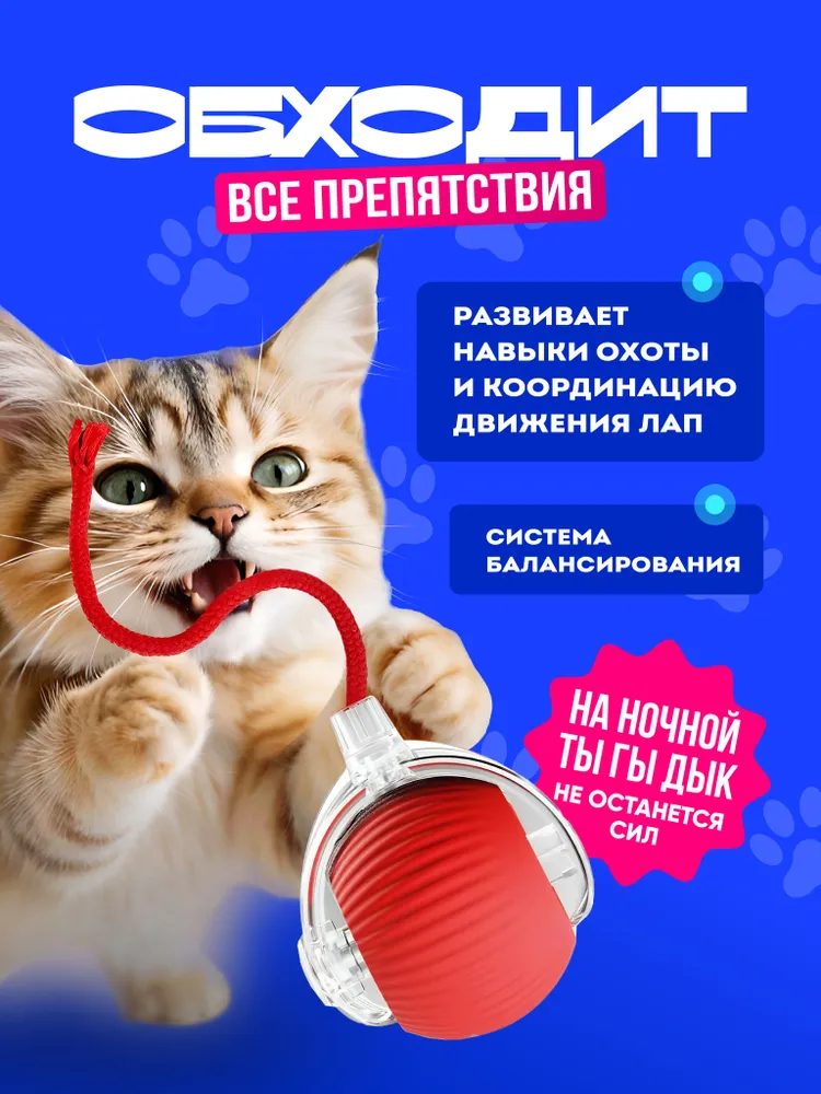 Прекрасно подойдет для кошек, поможет развить ловкость и реакцию питомца. Эта игрушка для кошек идеальна для того, чтобы занять вашего питомца, когда вы не в доме. Кроме того, она поможет поддержать вашего питомца в отличной форме, улучшить контакт с хозяином и развить интеллект. Если вы ищете подарок для обладателей домашних питомцев, то рекомендуем обратить внимание на эту автоматическую игрушку.Игрушка дразнилка для кошек!Интерактивная игрушка для кошек способна дразнить вашего питомца, меняя траекторию движения, обходя препятствия и создавая непредсказуемые вибрации. Ваша кошка будет в восторге от такой разнообразной игровой палитры!Светится и вибрирует!Интерактивная игрушка для кошек обладает яркими цветами, привлекательными звуками и интересными текстурами, чтобы вдохновить вашу кошку на игру и активное движение.Игрушка имеет 3 режима работы:1 режим.Быстрый режим работы (постоянный синий свет )2 режим.Интерактивный режим работы (постоянный желтый свет): автоматический переход в режим ожидания после 5 минут работы, повторно активируется после касания (толкания). То есть Ваш питомец может самостоятельно запускать процесс игры, который длится до 4х часов.3 режим.Медленный режим работы (постоянный фиолетовый свет)Можно выбрать разные цвета!Заказывайте игрушку для кошек интерактивную и автоматическую прямо сейчас и предоставьте вашему питомцу уникальный опыт игры и развлечения. В нашем магазине большой ассортимент товаров для животных, так что вы можете выбрать и другие интересные товары для вашего питомца. Не упустите возможность порадовать своего кота и сделать его жизнь веселее и интереснее!